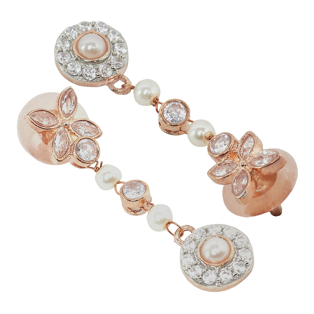 Round Cut Zircons and Faux Pearls Adorned Brass Gold Plated Pendant Set