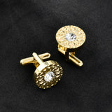 Add a touch of sophistication to your wardrobe with these distinguished gold-plated alloy cufflinks by Voylla, crafted for the modern man who appreciates timeless elegance and quality craftsmanship. The exquisite round design showcases a finely detailed, textured pattern that catches the light with every movement, complemented by a central crystal that adds a hint of sparkle and luxury. Made from durable alloy and finished with a lustrous gold plating, these cufflinks are built to last and make a striking addition to any formal outfit.Whether you're dressing up for a business meeting, attending a wedding, or celebrating a special occasion, these cufflinks are the perfect accessory to elevate your ensemble. They are ideal for party wear and wedding wear, making a statement of style and refinement. Additionally, these cufflinks make an excellent gift for the men in your life, be it for Valentine's Day, Diwali, Rakshabandhan, or other celebrations. Give the gift of elegance and style to your brother, lover, boyfriend, or husband, and show them how much you care with this sophisticated accessory from Voylla.