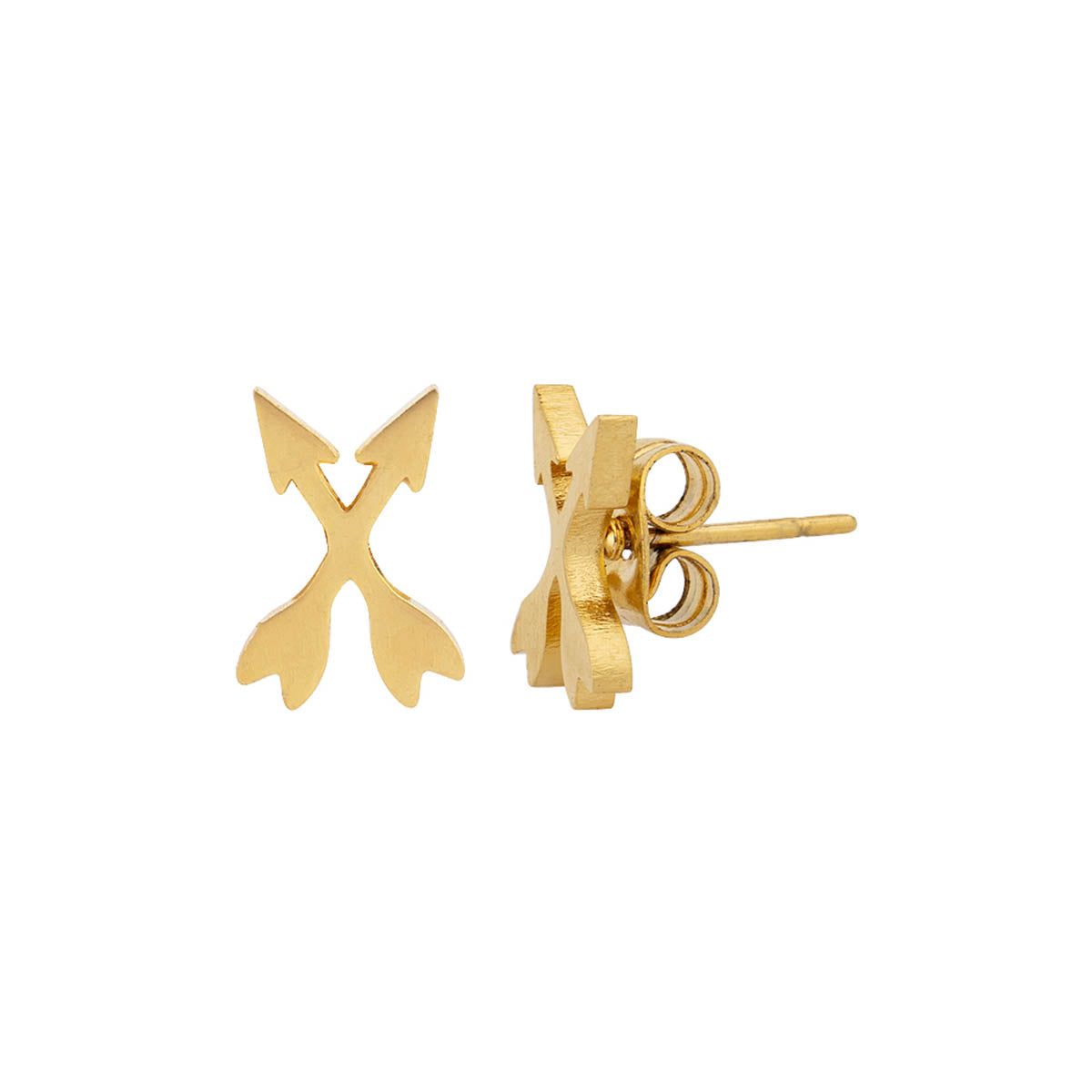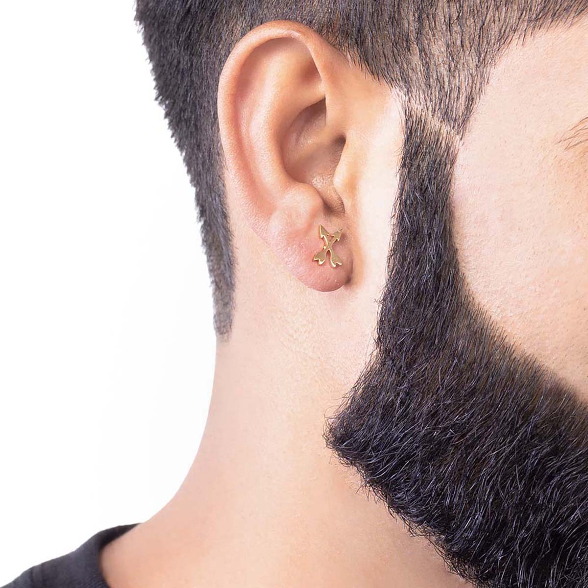 Arrows motif earrings for men. Crafted from stainless steel and yellow gold plated. Good for everyday wear. To make your accessories last longer avoid harsh chemicals and moisture. Keep dry, clean with dry cloth and wear with panache. "India’s largest fashion jewelry brand DARE, comes from the House of Voylla as a limited edition of handcrafted accessories for the modern Indian men. "