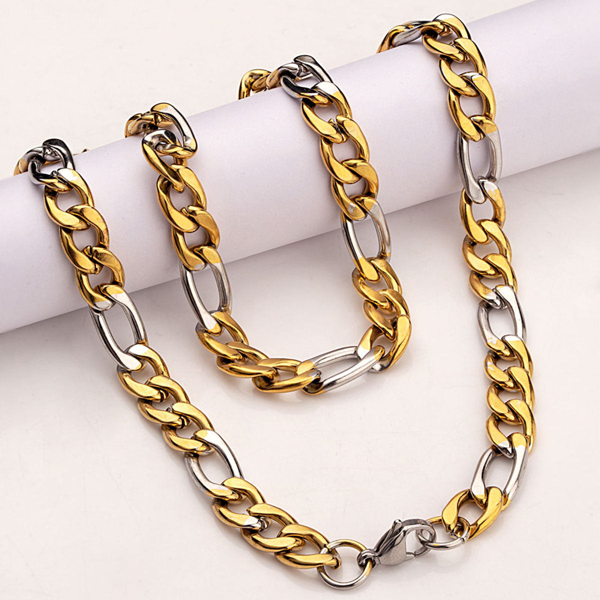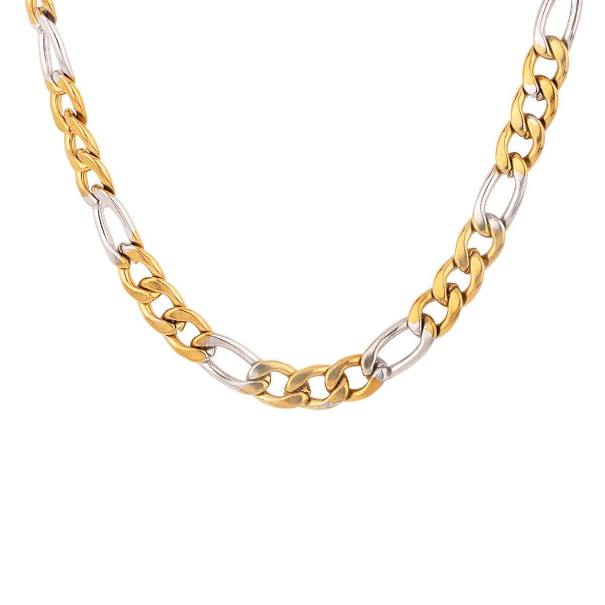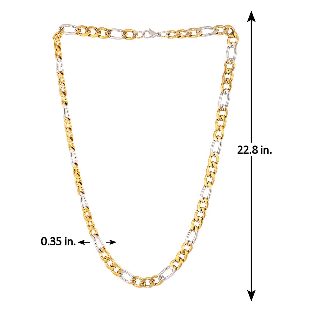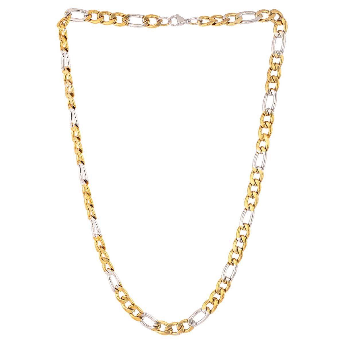 Anchor pattern link chain for men with two tone plating. Made from stainless steel. Good for formal and casual looks. To make your accessories last longer avoid harsh chemicals and moisture. Keep dry, clean with dry cloth and wear with panache. "India?s largest fashion jewelry brand DARE, comes from the House of Voylla as a limited edition of handcrafted accessories for the modern Indian men. "