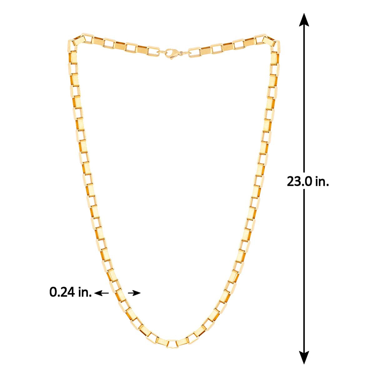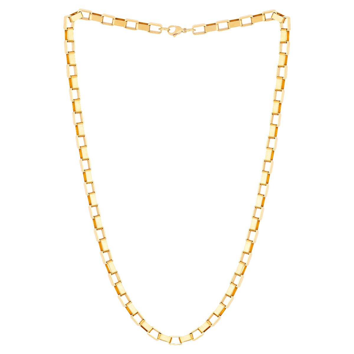 Box link pattern chain for men with yellow gold plating. Made from stainless steel. Good for formal wear.