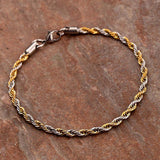 Classic rope design men's bracelet. Made from stainless steel and two tone plated. Wear with a casual t-shirt or shirt.