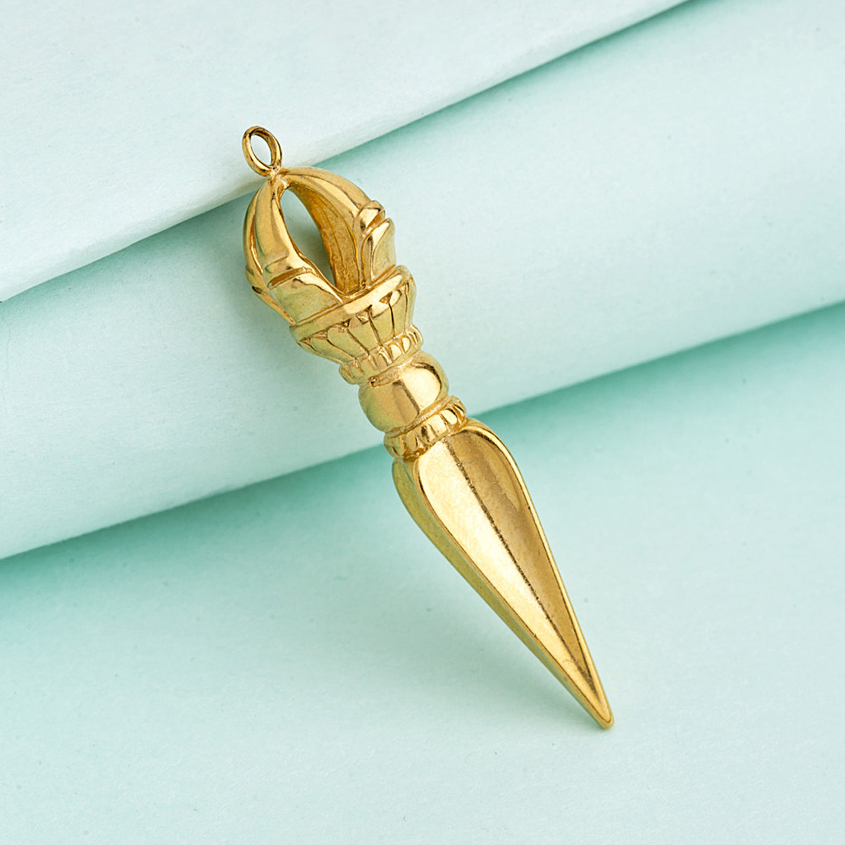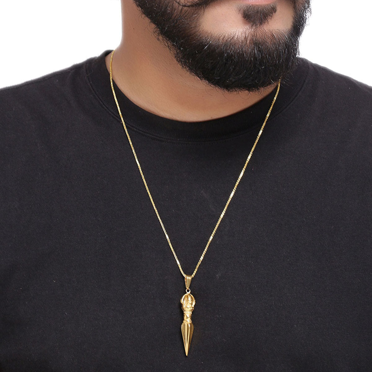 Dagger motif pendant made from stainless steel and yellow gold plated. Wear with formal attire. To make your accessories last longer avoid harsh chemicals and moisture. Keep dry, clean with dry cloth and wear with panache. "India’s largest fashion jewelry brand DARE, comes from the House of Voylla as a limited edition of handcrafted accessories for the modern Indian men. "