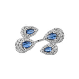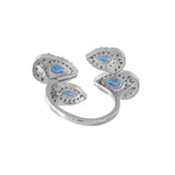 The Voylla Royal Romance Elsa Front Open Ring is a stunning piece crafted from high-quality brass and plated with white rhodium, ensuring a luxurious and durable finish. This exquisite ring, part of the Royal Romance collection, features a unique front-open design adorned with pear-shaped blue stones surrounded by sparkling American diamonds, embodying elegance and opulence. Perfect for festive occasions, weddings, or as a thoughtful gift for women, this ring adds a touch of sophistication to any outfit. Style it with party wear, festive attire, or make it a statement piece. The deep blue stones and shimmering diamonds make it an ideal gift for Valentine’s Day, Diwali, Raksha Bandhan, or Christmas, making it a versatile addition to any jewelry collection. Keywords: women's ring, American diamond ring for women, women's gift, gift for women, stone ring, party wear ring, festive, wedding wear, Holi, Valentine gift, Valentine's Day gifts, ideas for Valentine's Day gifts, gifting, Diwali, Raksha Bandhan gift, gift for sisters, lover, girlfriend, wife, mother, Christmas, New Year, cocktail.