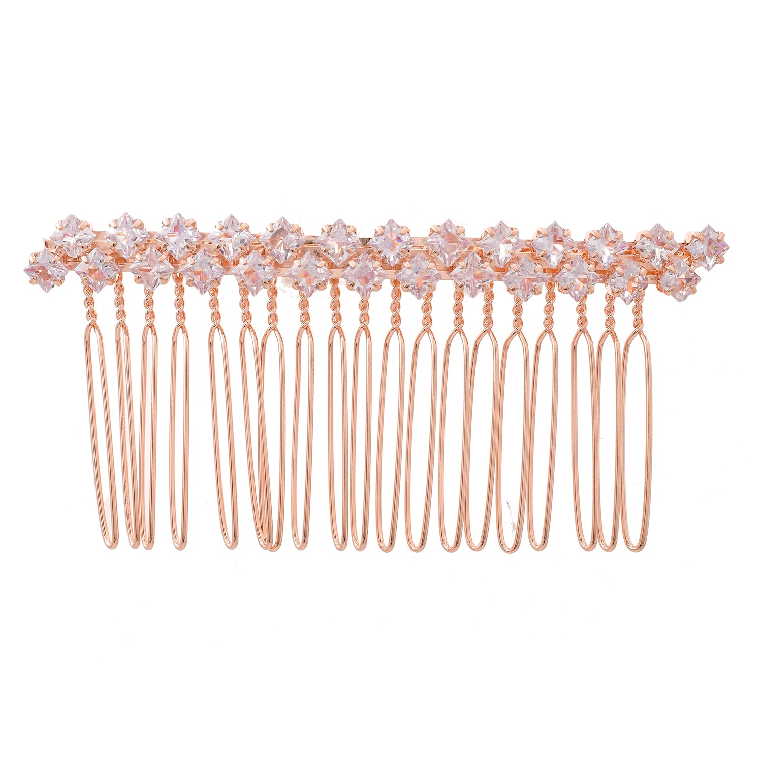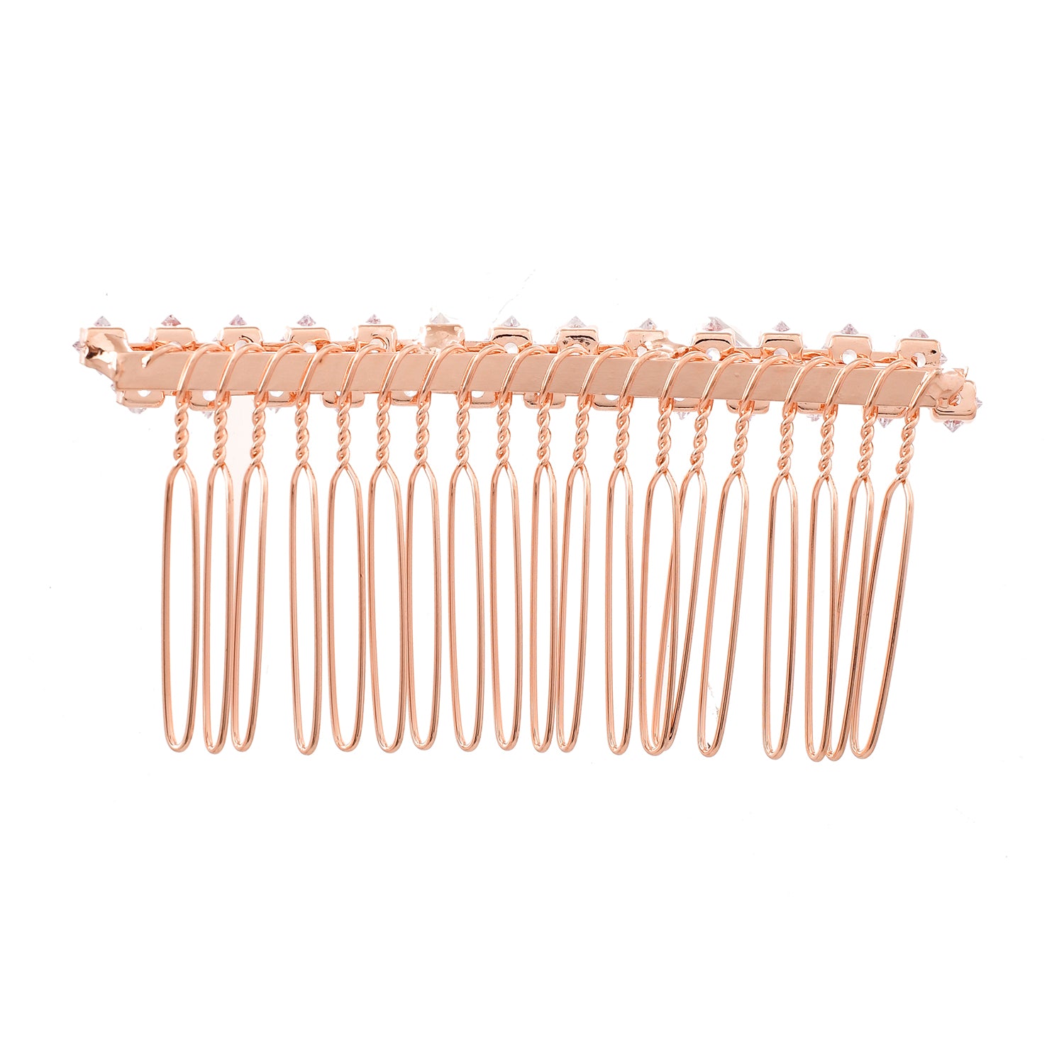 The Royal Romance Inanna Comb Pin Hair Accessory is an exquisite piece meticulously crafted from high-quality Alloy and plated with a luxurious rose gold finish. This opulent hair accessory showcases a delicate design adorned with sparkling American diamonds, artfully arranged to exude elegance and charm. Perfect for adding a touch of glamour to any hairstyle, it is ideal for special occasions like weddings, festive celebrations, and cocktail parties. The versatile design makes it a thoughtful and cherished gift for women, suitable for Valentine's Day, Diwali, Raksha Bandhan, Christmas, or any other special moment. Part of Voylla’s Royal Romance collection, this comb pin celebrates timeless elegance and impeccable craftsmanship, making it a must-have for anyone who appreciates fine jewelry.