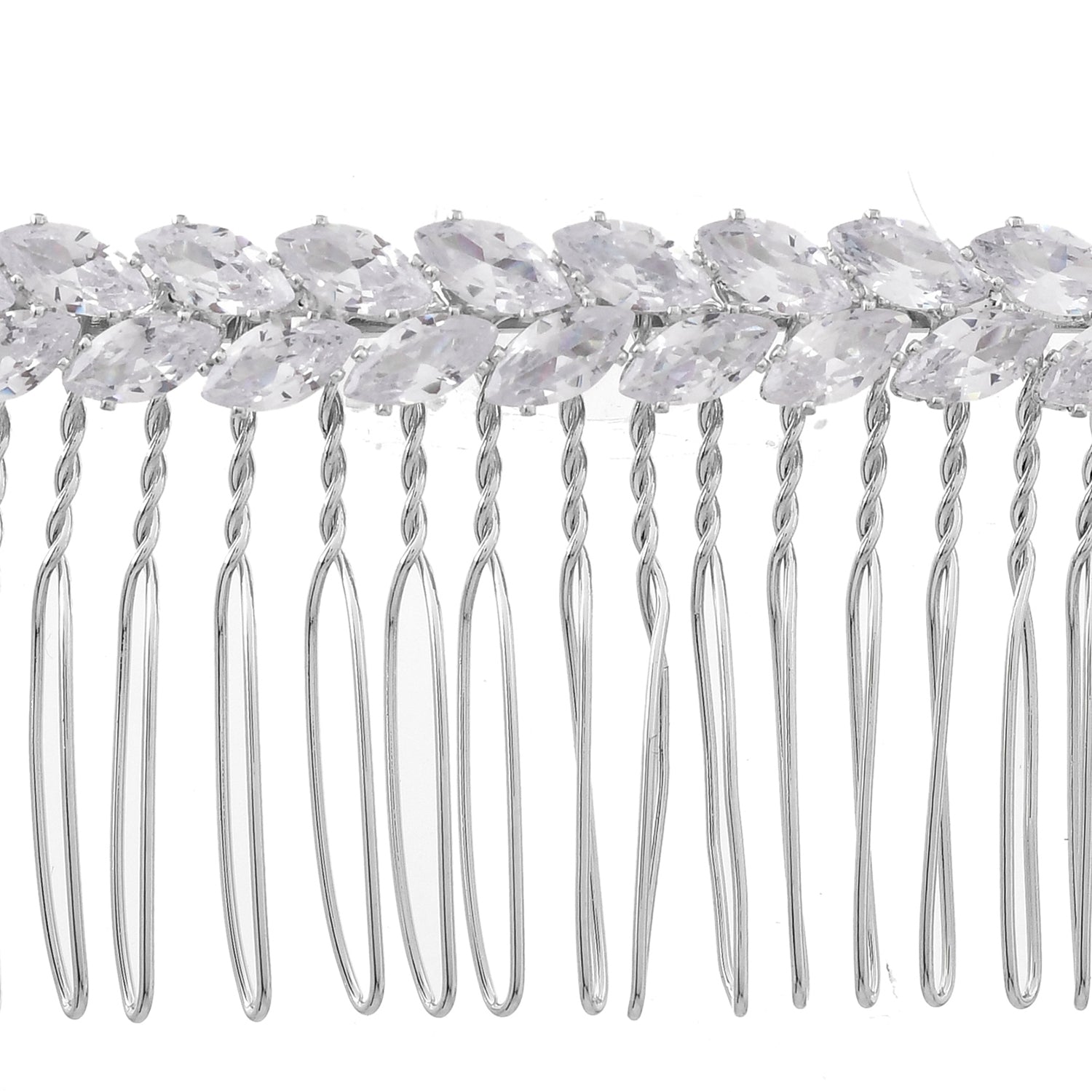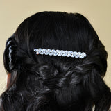The Royal Romance Juliana Comb Pin Hair Accessory is a stunning piece crafted from high-quality Alloy and plated with white rhodium, ensuring both durability and a luxurious finish. This exquisite comb features a row of meticulously arranged American diamonds, each cut to perfection to reflect light brilliantly, adding a touch of sparkle to any hairstyle. Part of the Royal Romance collection, this accessory embodies timeless elegance and opulent craftsmanship, making it perfect for weddings, festive occasions, or as a thoughtful gift for loved ones. The versatile design allows it to complement various hairstyles, from classic updos to loose waves, making it an essential addition to any woman's accessory collection. The clear, sparkling stones set against the white rhodium plating create a sophisticated and regal look, ideal for party wear, festive celebrations, and special occasions like Valentine's Day, Diwali, Raksha Bandhan, Christmas, and New Year. This comb pin is not just an accessory but a statement piece that adds a touch of royalty to your ensemble.