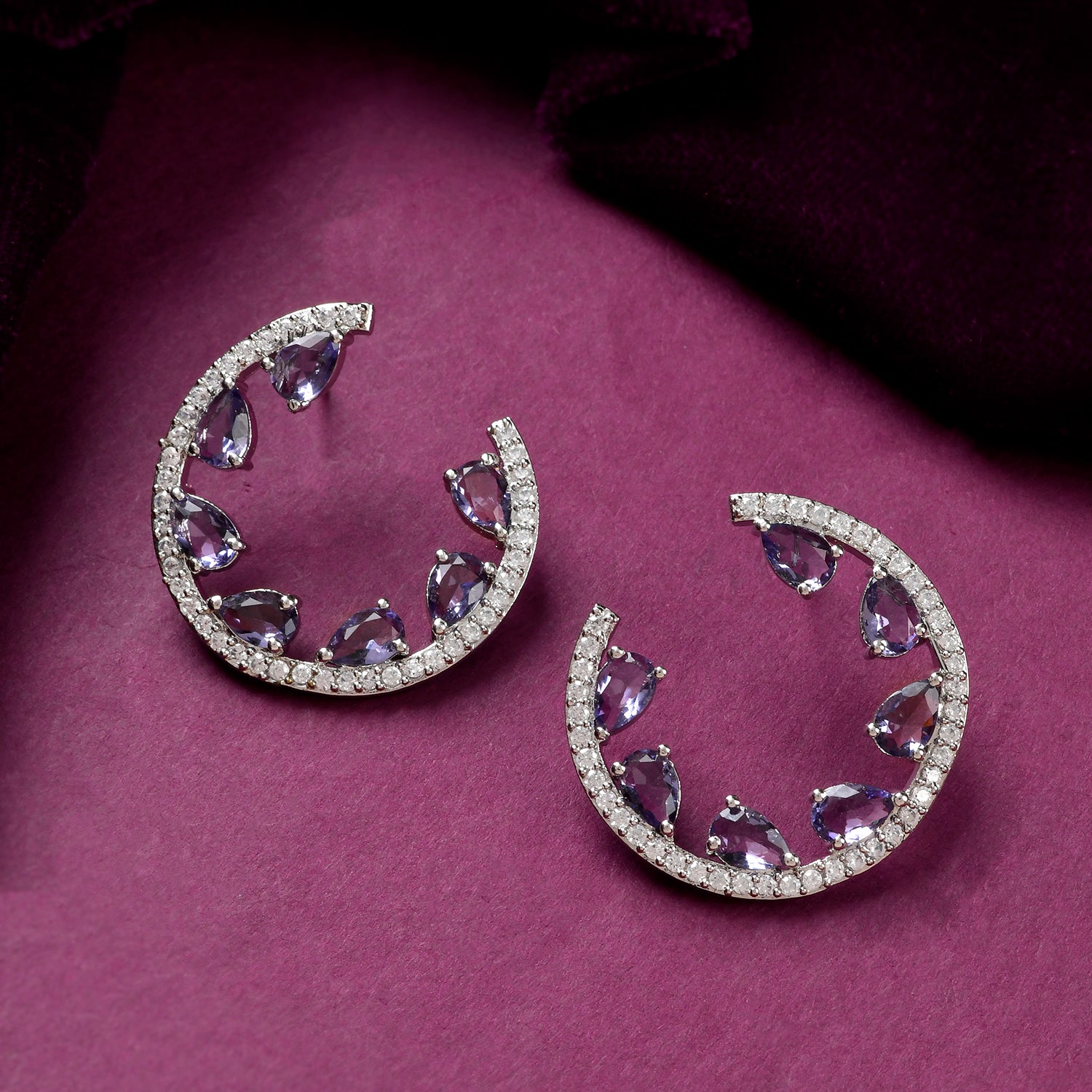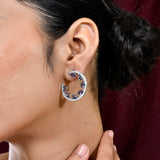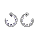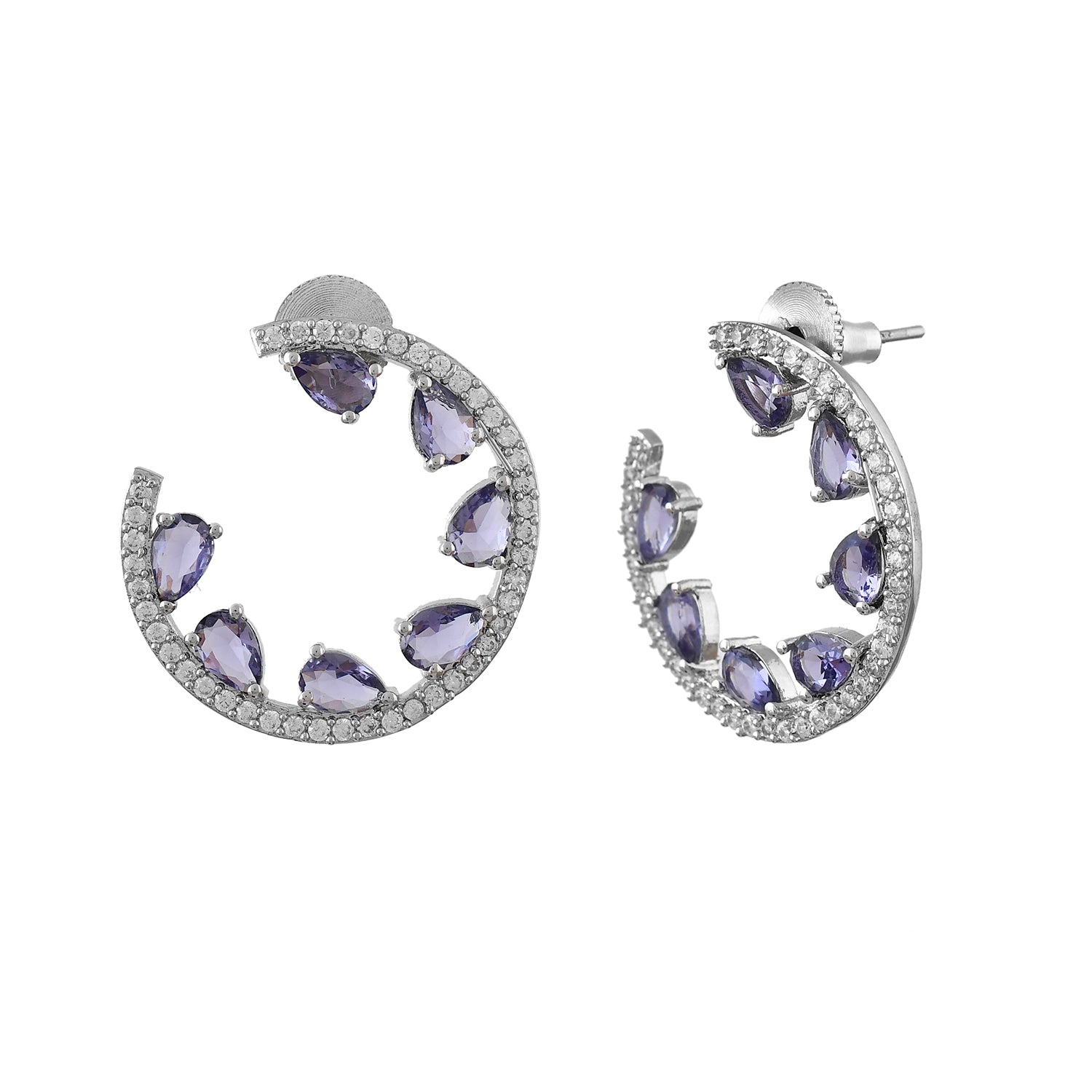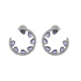 The Royal Romance Inanna Statement Earrings are a stunning addition to any jewelry collection, crafted from high-quality brass and plated with white rhodium for a luxurious finish. These earrings feature an open hoop design adorned with sparkling American diamonds and vibrant purple stones, creating a captivating contrast that exudes elegance and sophistication. Perfect for festive occasions, weddings, or as a thoughtful gift for loved ones, these earrings are versatile enough to complement both traditional and contemporary outfits. Whether you're dressing up for a cocktail party or looking for the perfect Valentine's Day gift, these statement earrings are sure to make a lasting impression. Ideal for gifting on occasions like Diwali, Raksha Bandhan, Christmas, or New Year, they are a timeless piece that adds a touch of regal charm to any ensemble.