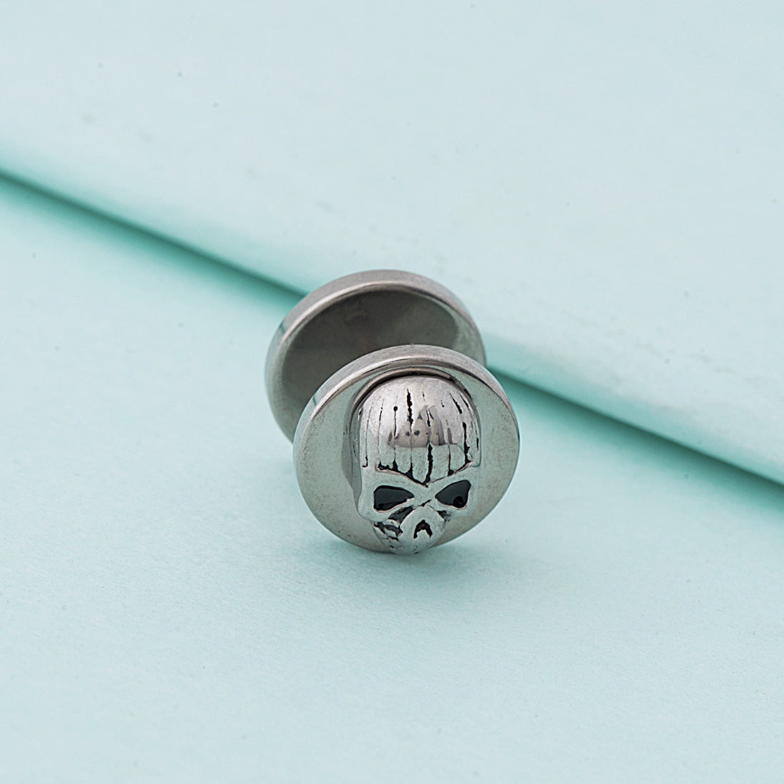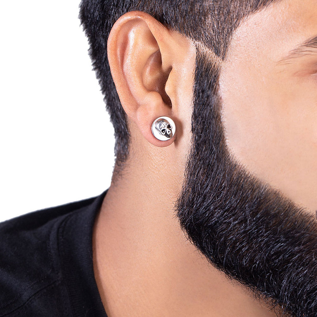 Skull motif embossed barbell earring with silver plating. Crafted from stainless steel. Wear with casual or party attire. To make your accessories last longer avoid harsh chemicals and moisture. Keep dry, clean with dry cloth and wear with panache. "India’s largest fashion jewelry brand DARE, comes from the House of Voylla as a limited edition of handcrafted accessories for the modern Indian men. "