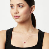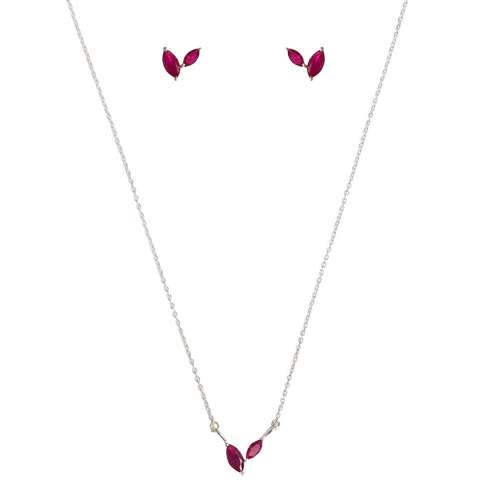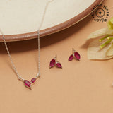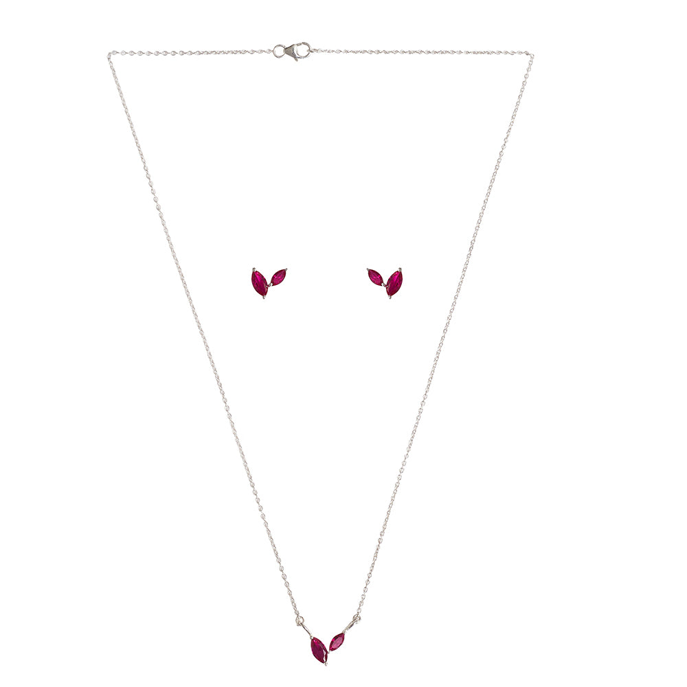 Simple yet elegant, this pendant and stud earrings set from our Sparkling Silver Collection will amplify your overall grace. This set is designed in 925 Sterling Silver and adorned with red cubic zirconia. Style Tip: A light weighted and a beautiful piece perfect for casual and office wear.