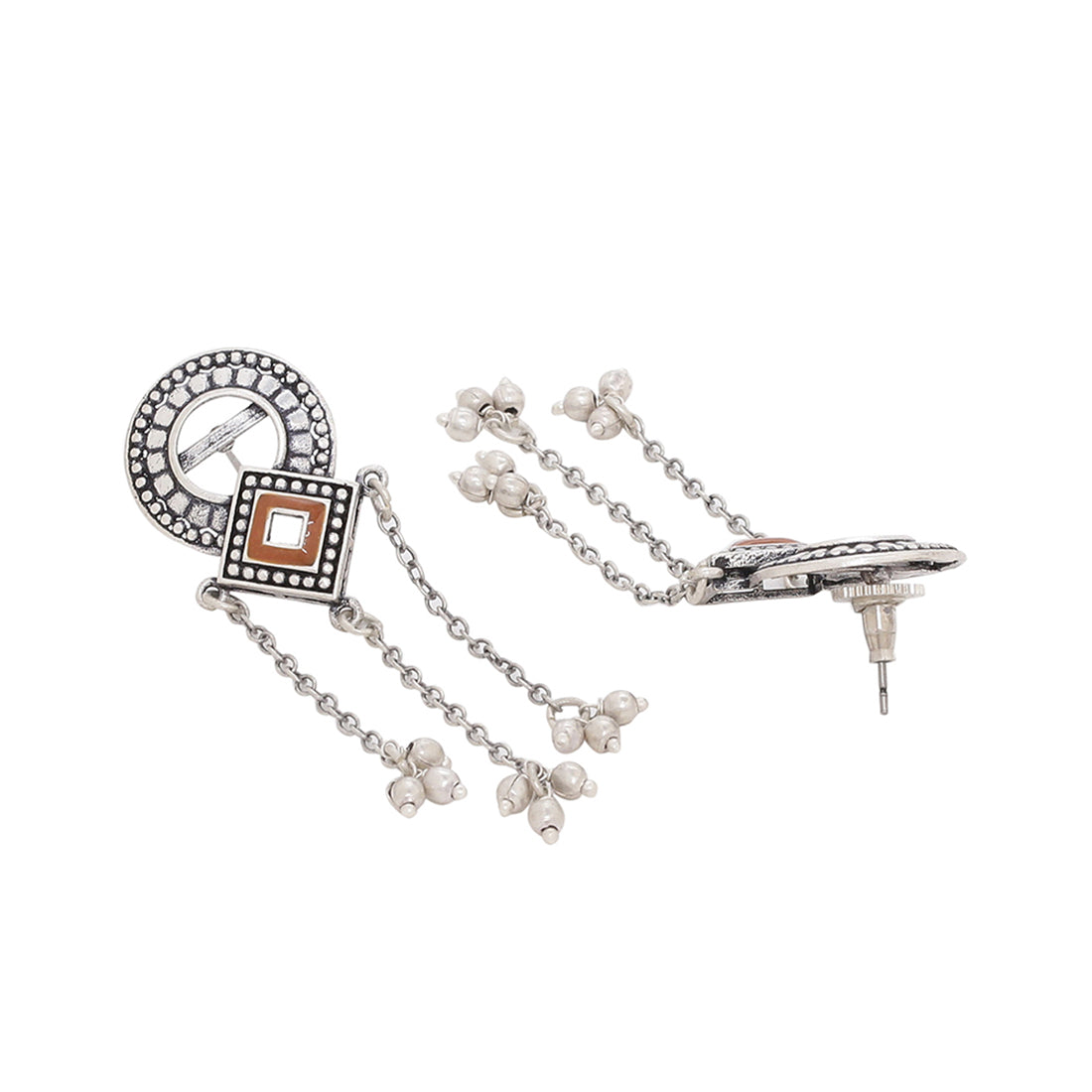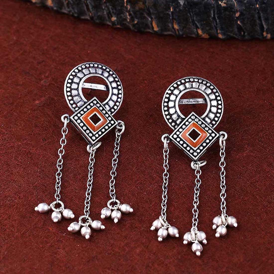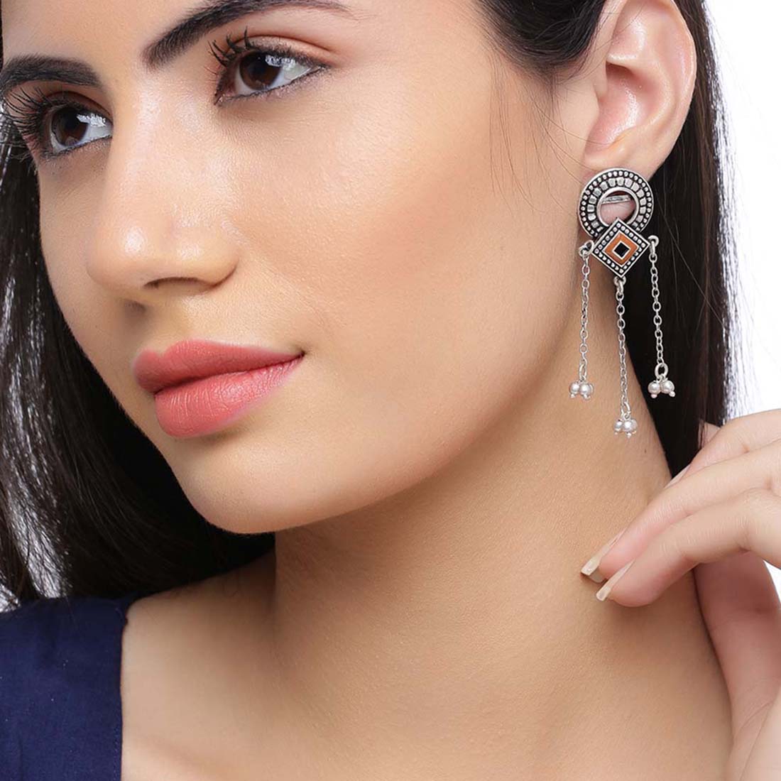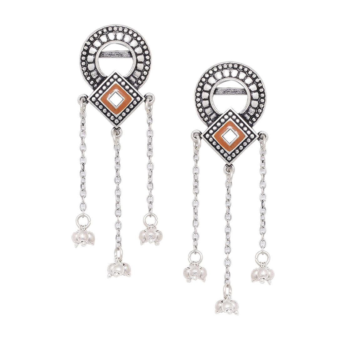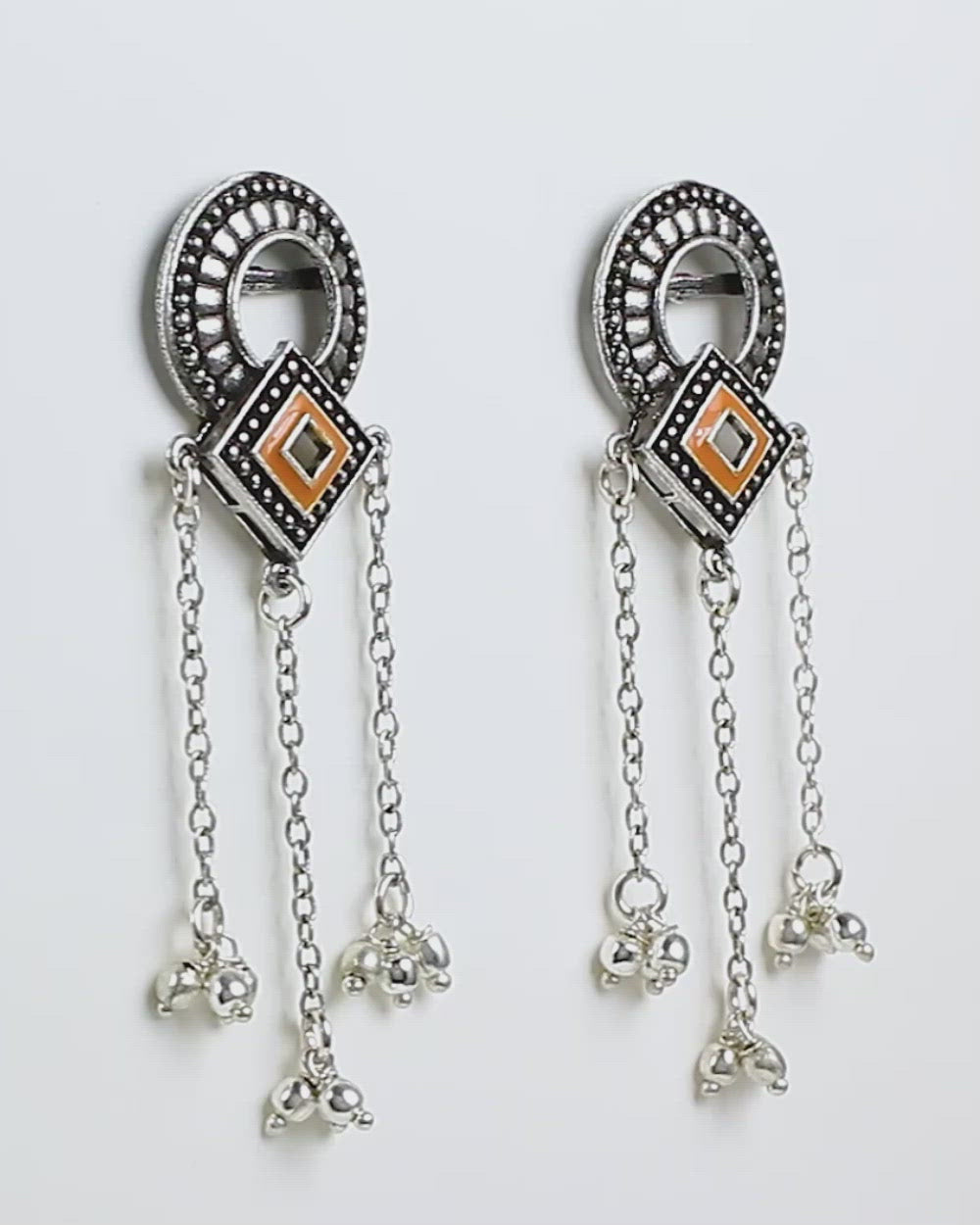 Tassels drop earrings inspired by the classic bell design. Mini ghungroos adorned and oxidised plated. Enameled with a yellow hue. Perfect for daytime casual wear. This piece of jewelry comes with the Voylla assurance of quality and durability.