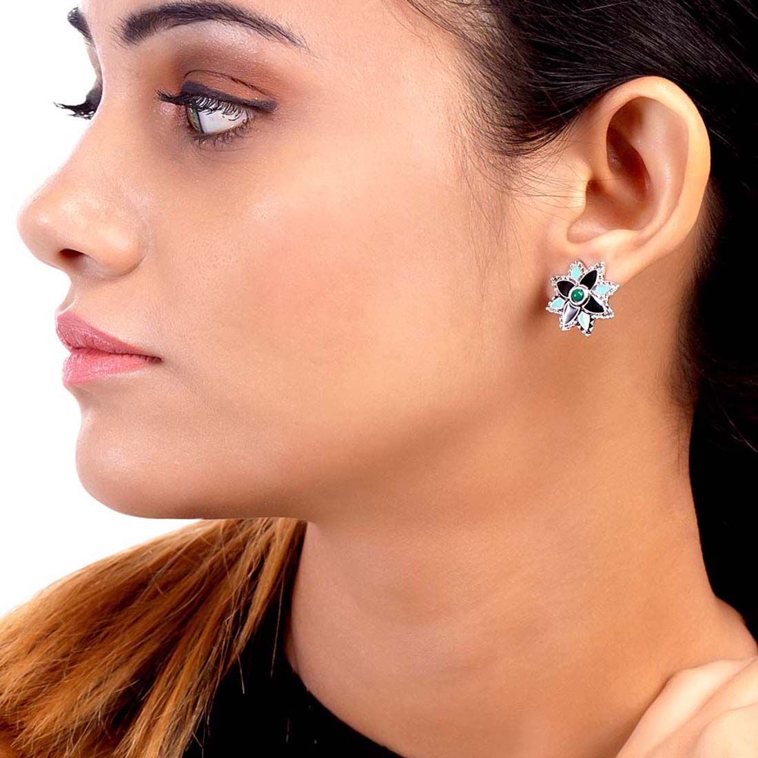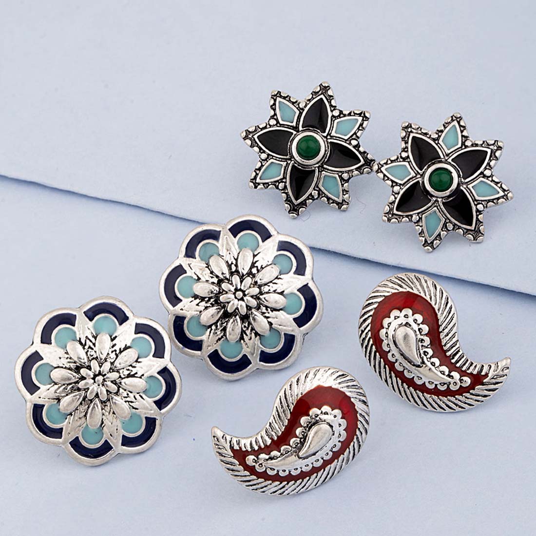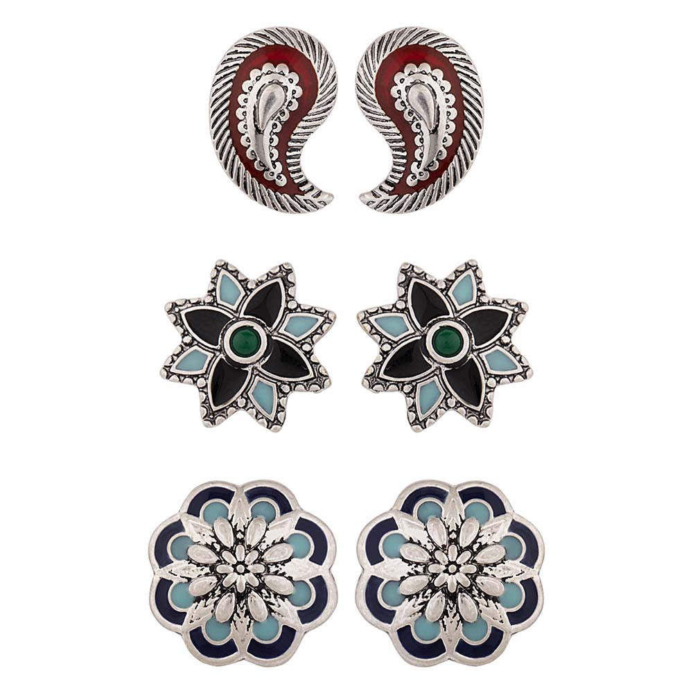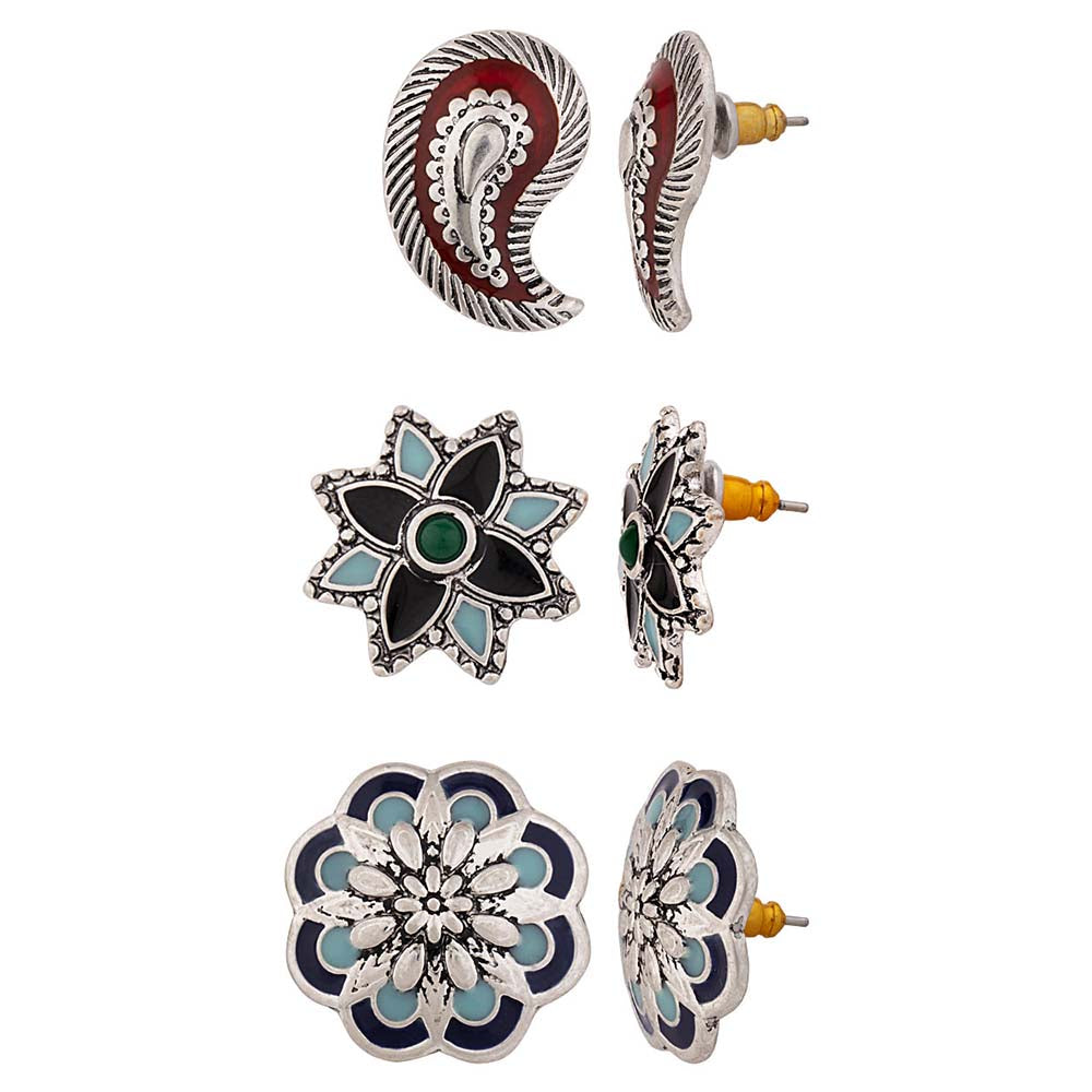 A set of three oxidised studs with hand enamelled detailing. Great for 9 to 5 wear.