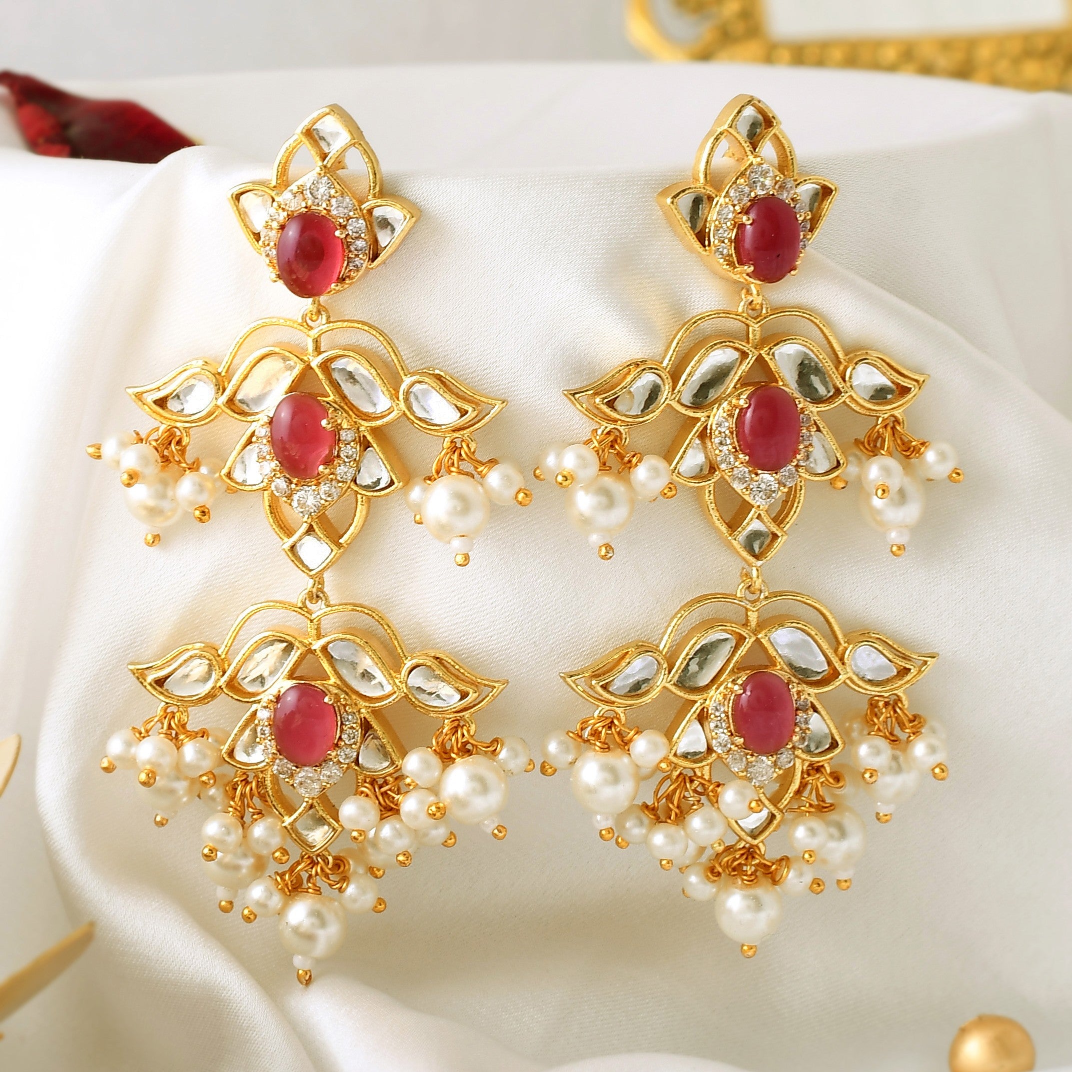 Inspired by the timeless beauty of a Rose Garden, this collection seamlessly blends the intricate patterns and classic silhouettes of Kundan Polki jewelry with a contemporary twist. Adorned with a mesmerizing combination of Polki, CZs, carved stones, and pearls, each piece tells a story of grace and sophistication.