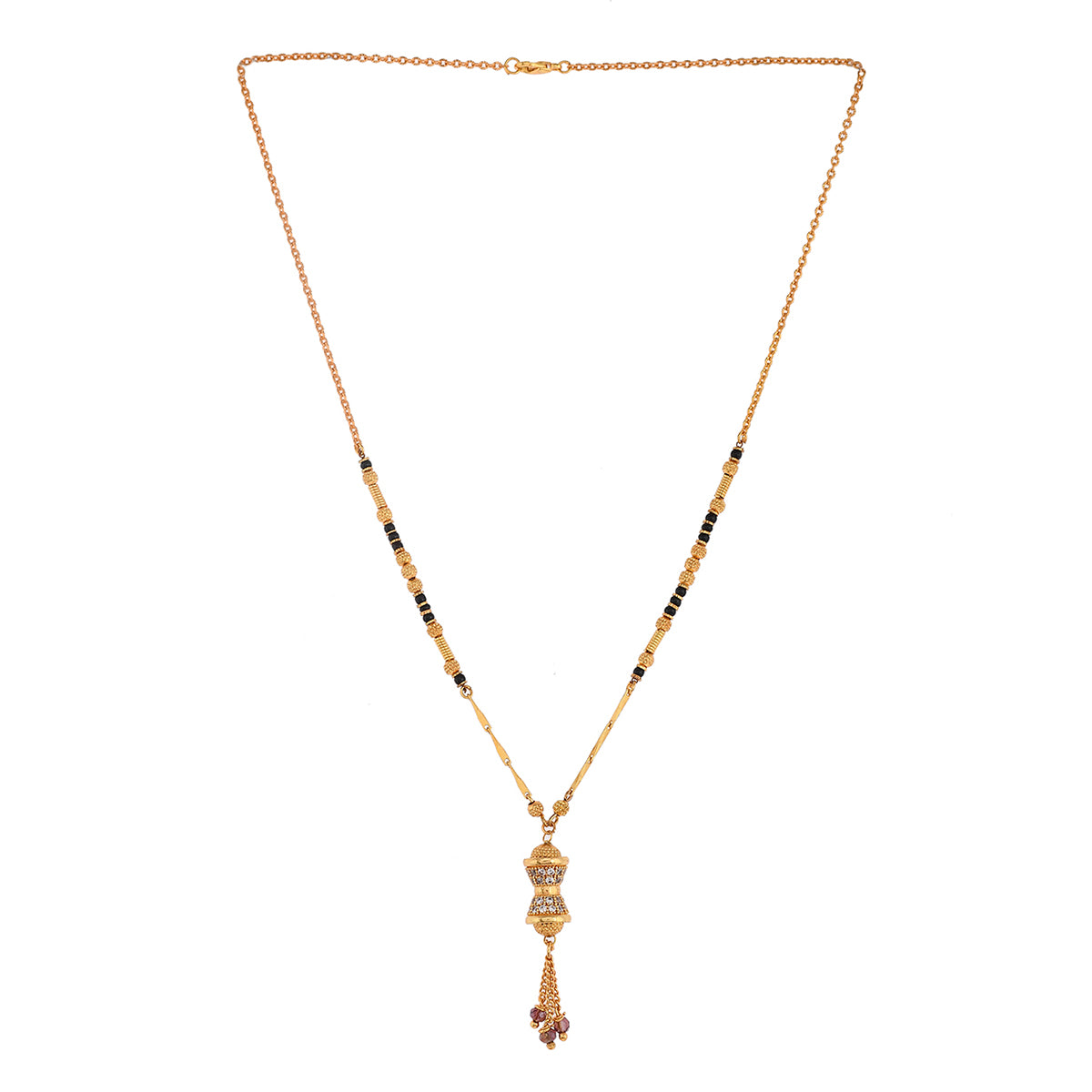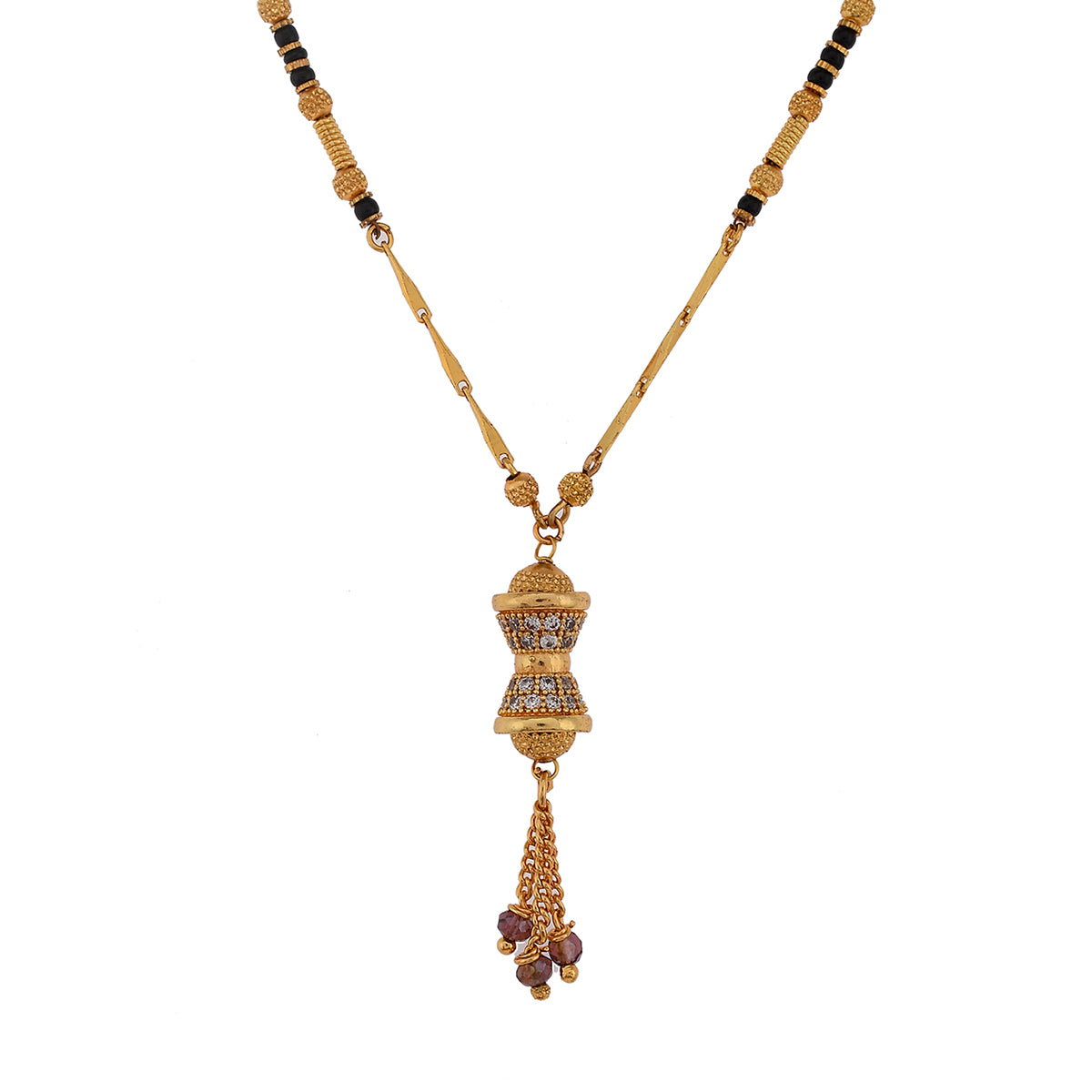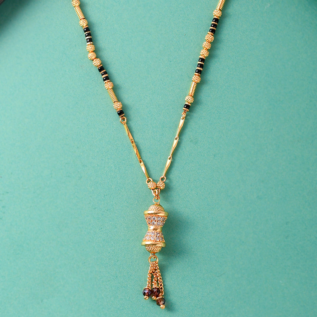 Elegant, classy and contemporary - that's what comes to our mind on seeing this beaded chain mangalsutra. This is crafted from brass and are studded with dazzling CZ stones for added brilliance and glamour. Wear them to get noticed for all the right reasons.