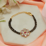 Shimmering Floret American Diamond CZ Golden Round Brass Bracelet