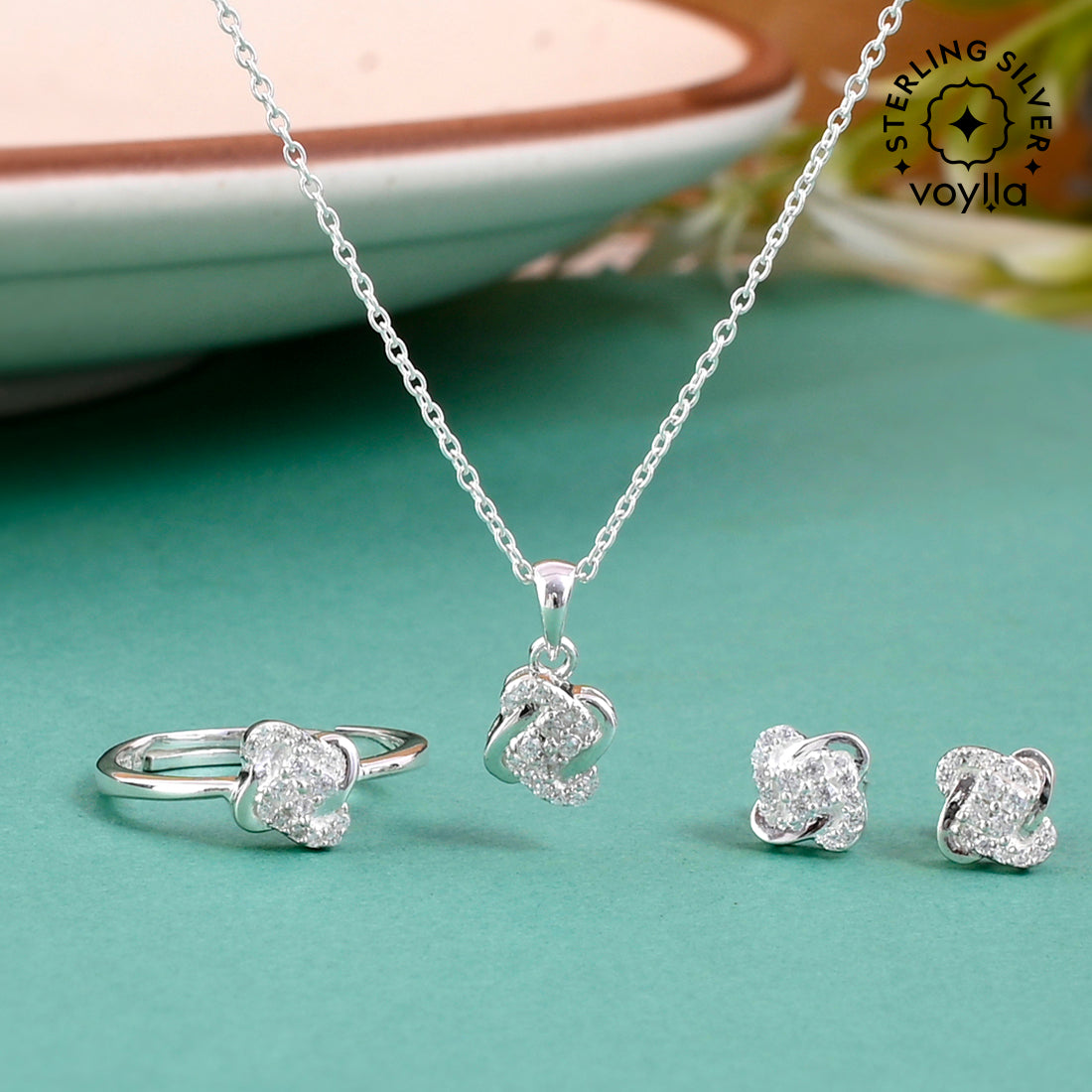 Shiny CZ Studded 925 Sterling Silver Designer Box Set