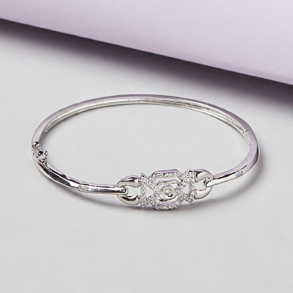 Add some stylish twist to your femininity by wearing this sparkling CZ studded cuff bracelet in silver plating from the house of Voylla. Made of brass, this wrist accessory is high in quality as light in weight.