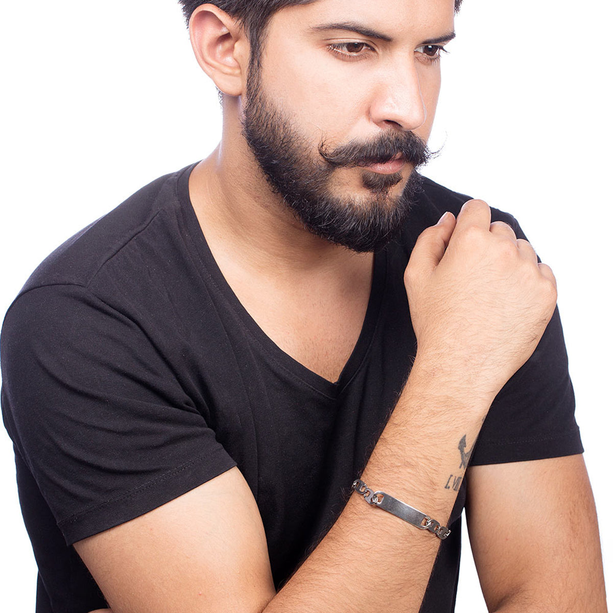 Designer silver plated bracelet for men from the House of Voylla to give you an attractive personality. A must add an accessory to add to your formal attire of your wish.