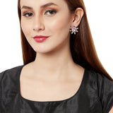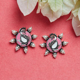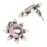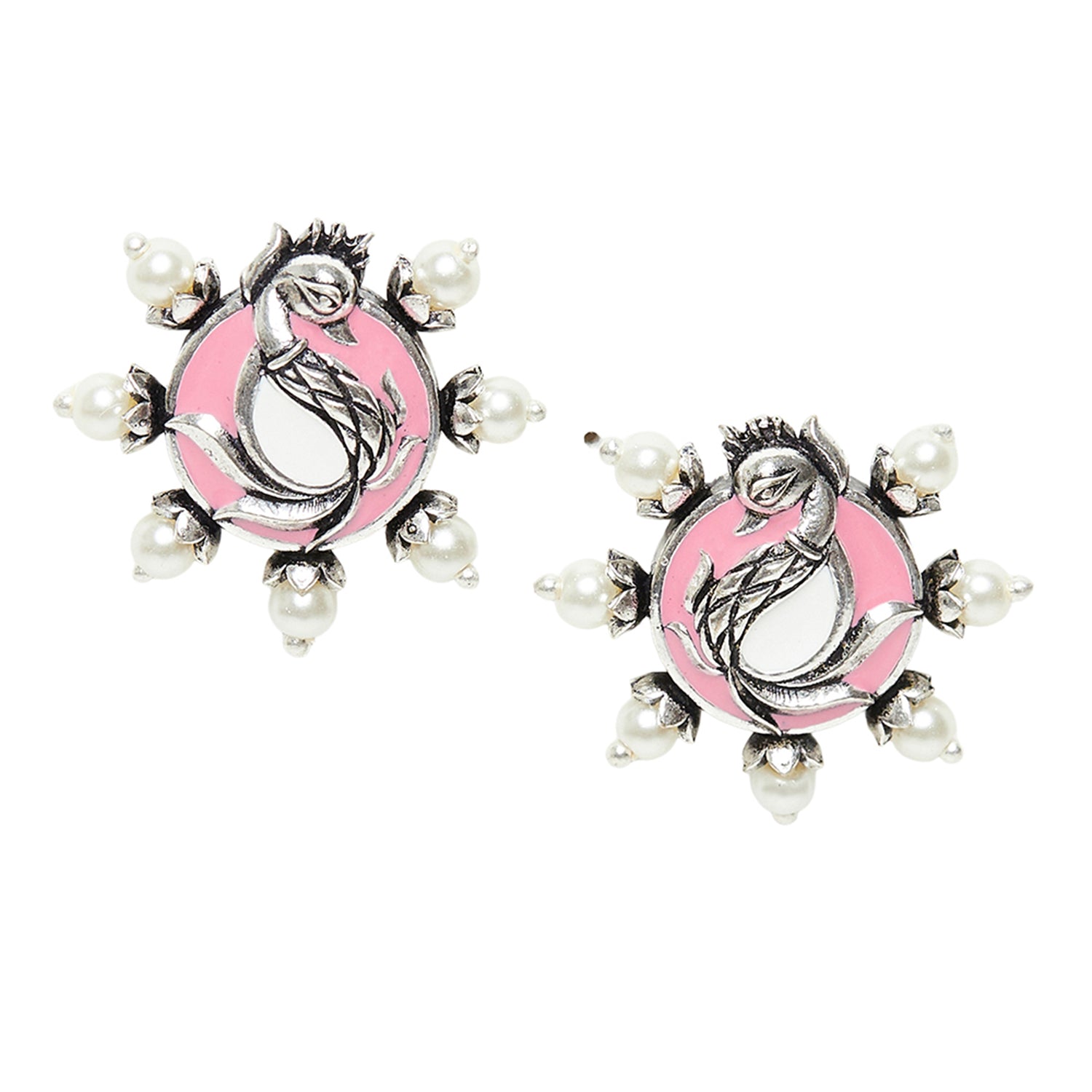 Shwet Kamal Faux Pearls Peacock Motif Silver Plated Stud Earrings