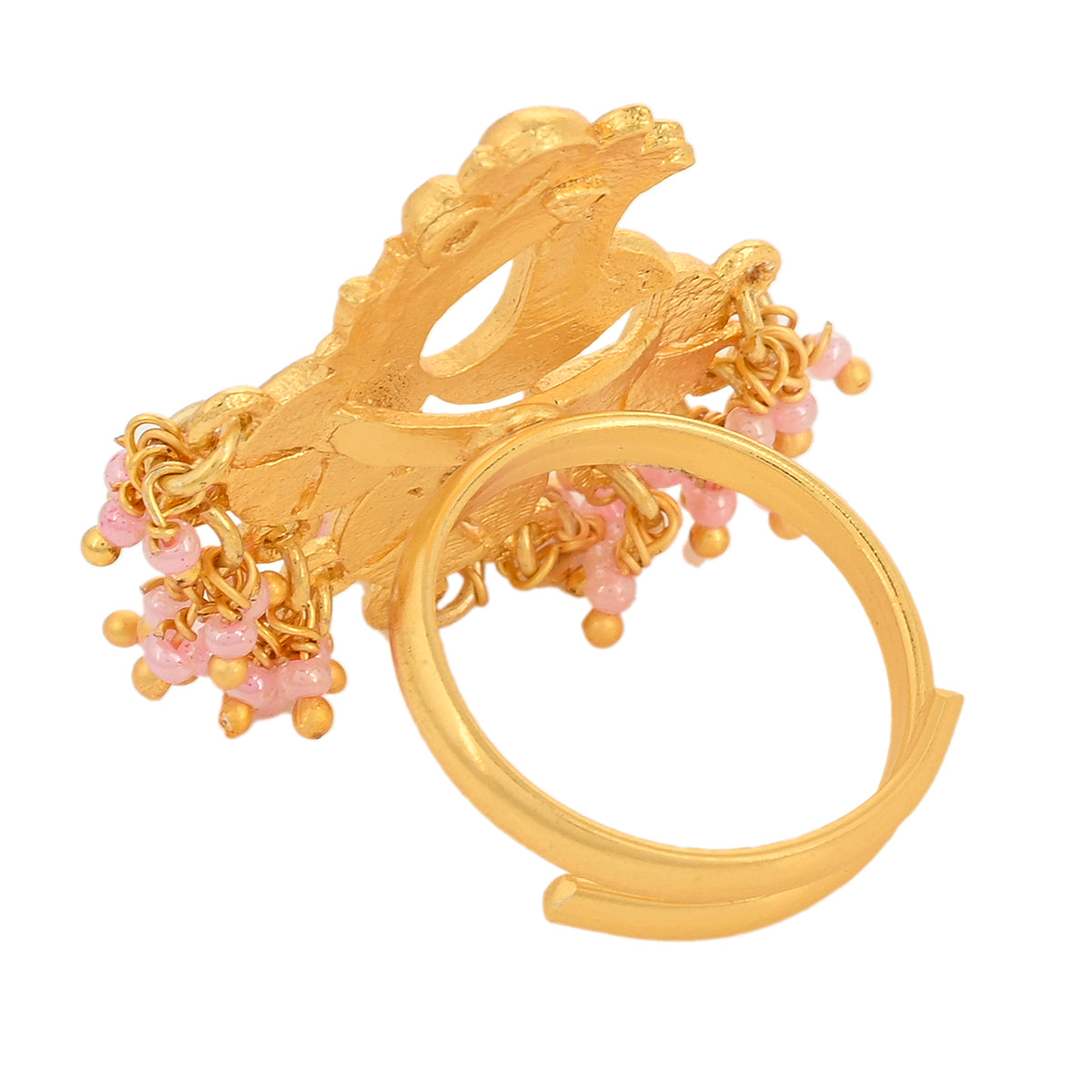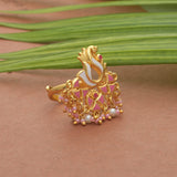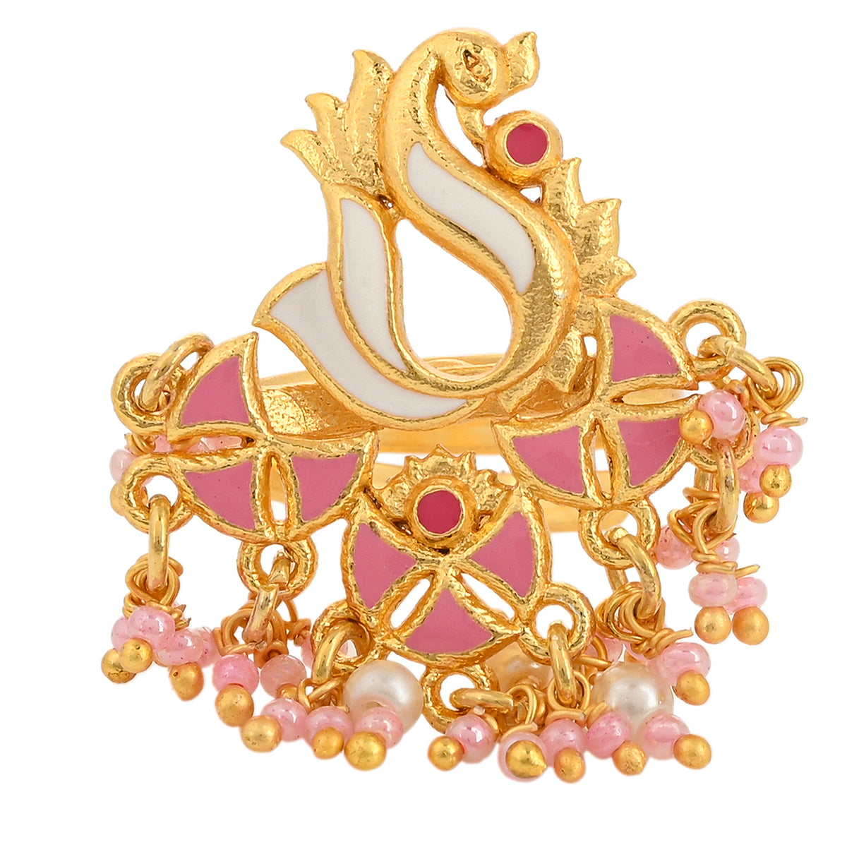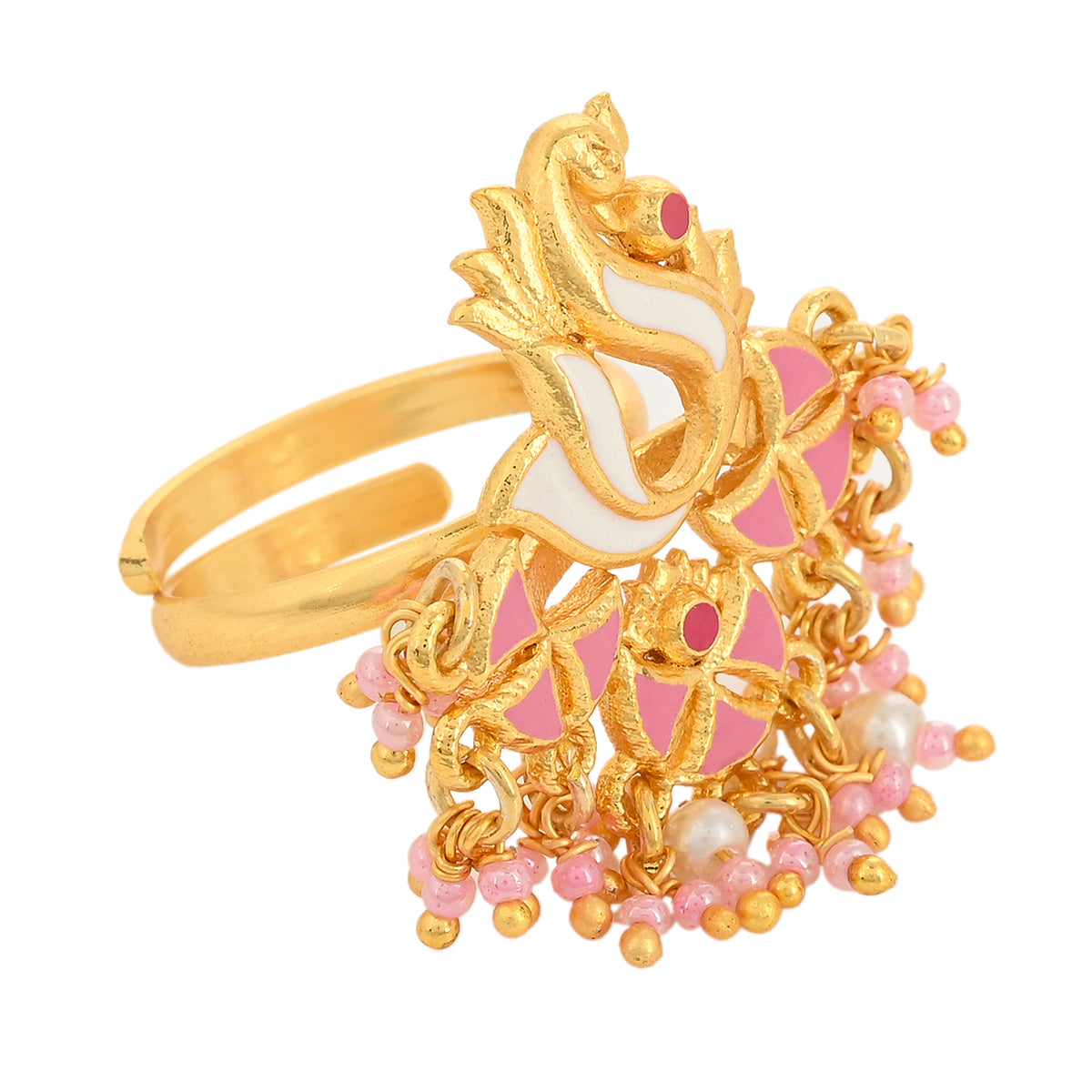 Shwet Kamal Gold Plated Peacock Enamelled Brass Adjustable Ring
