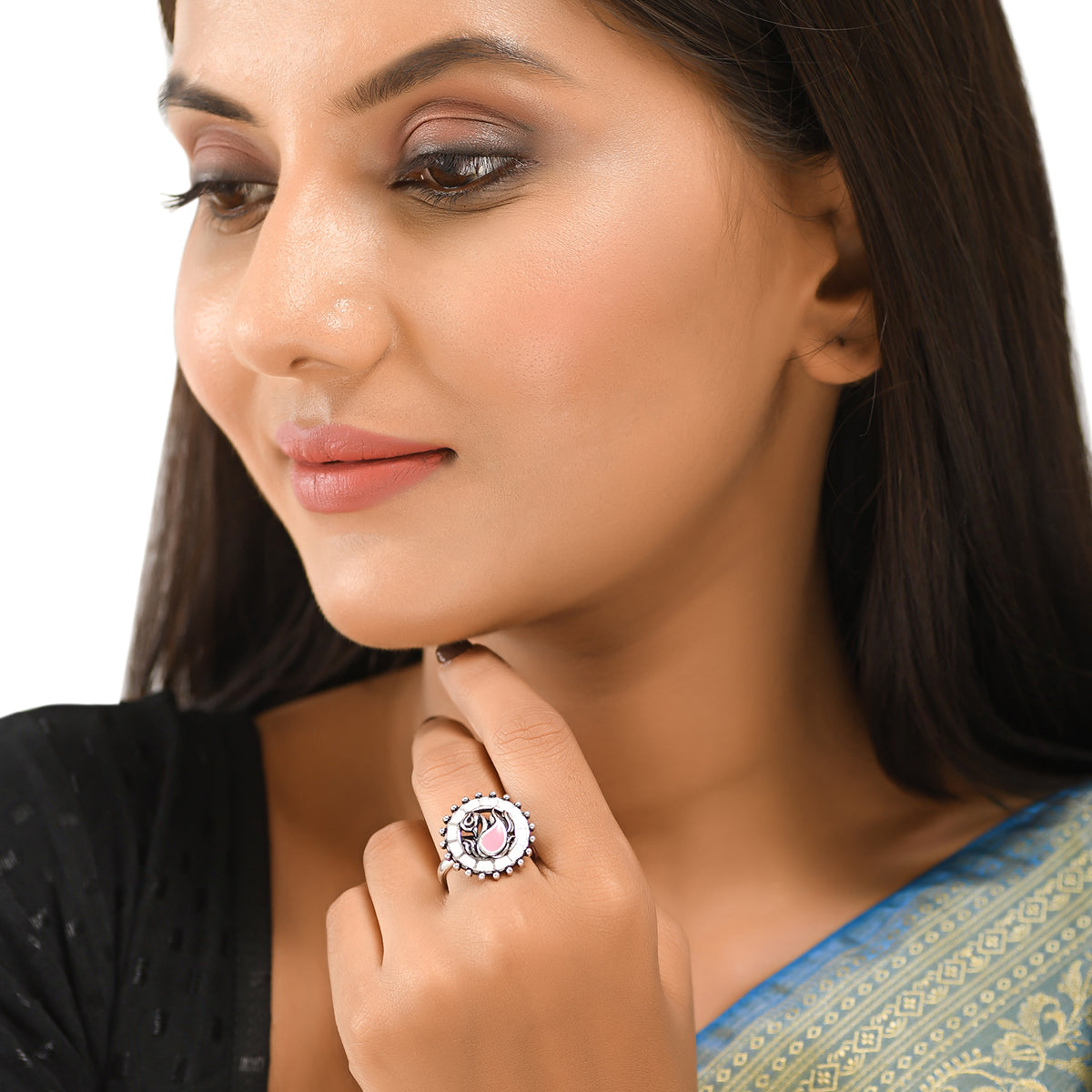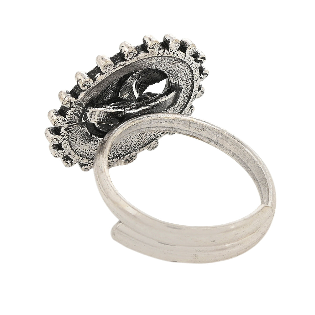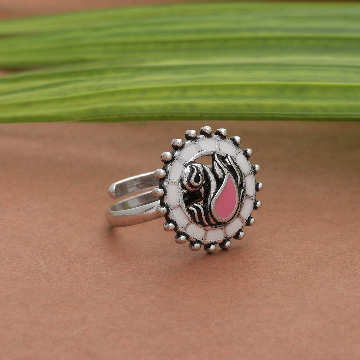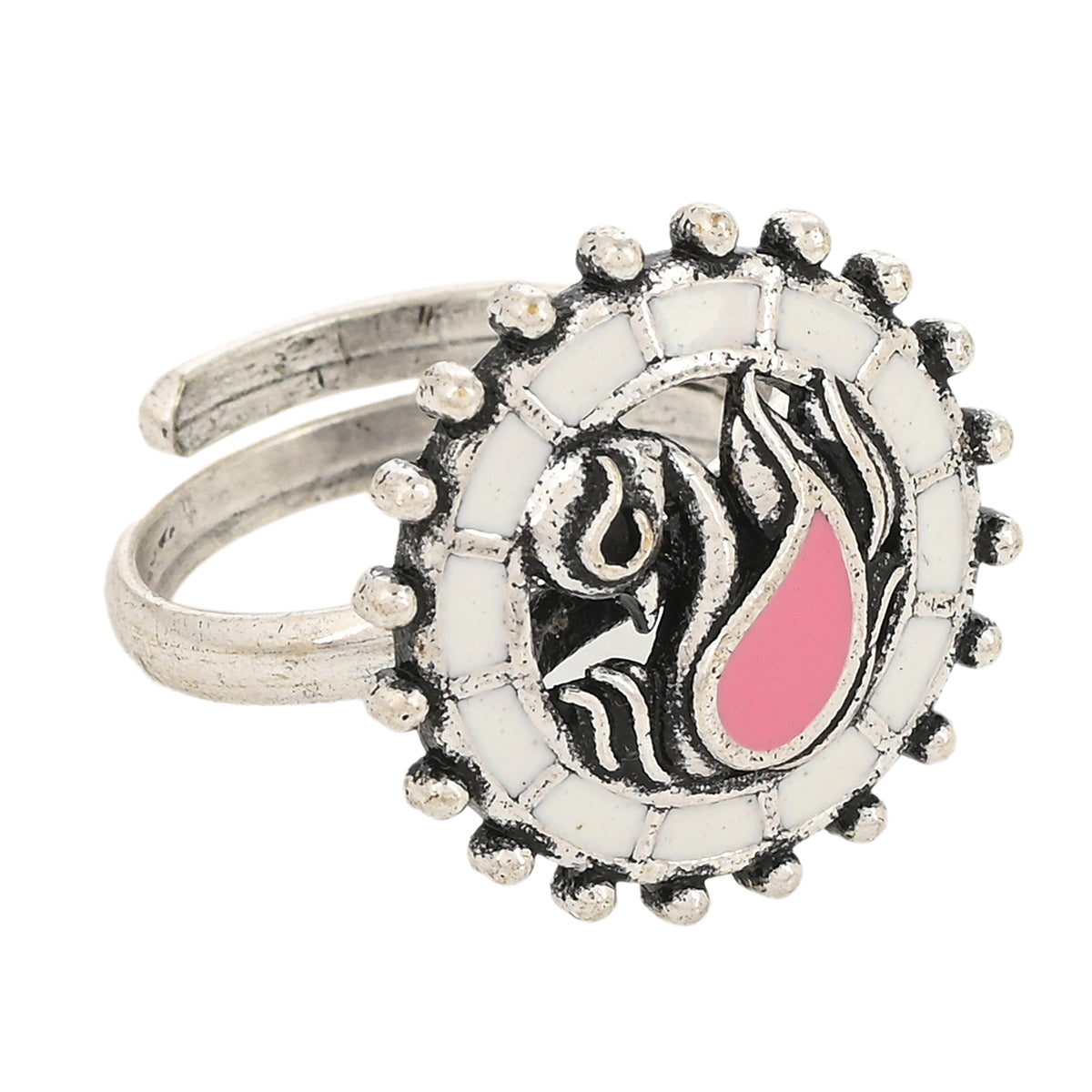 Shwet Kamal Lightly Embellished Adjustable Silver Plated Enamelled Brass Ring
