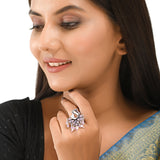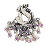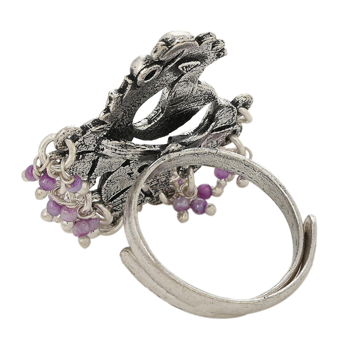 Shwet Kamal Peacock Motif Lightly Embellished Enamelled Brass Silver Plated Adjustable Ring