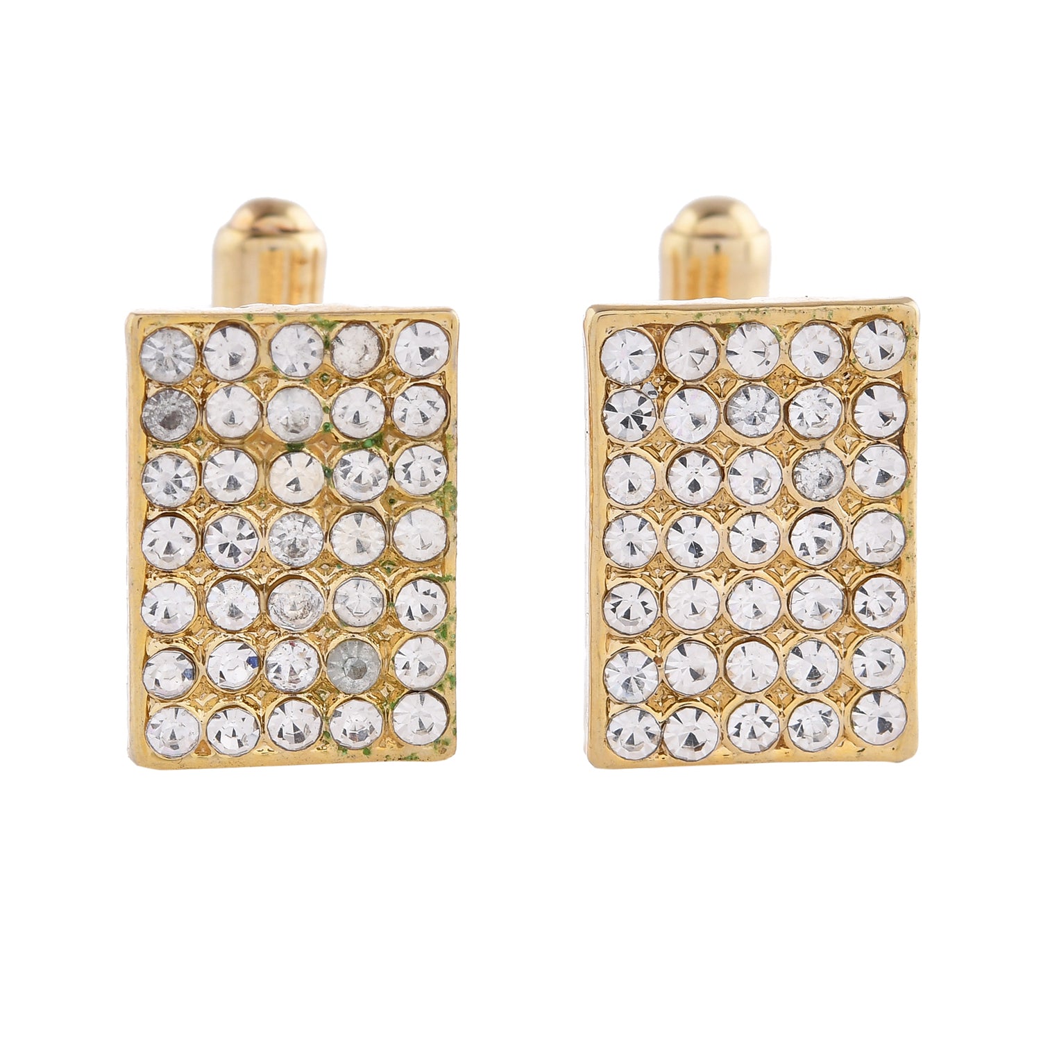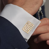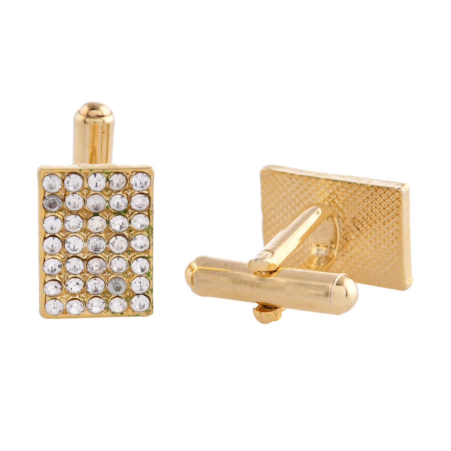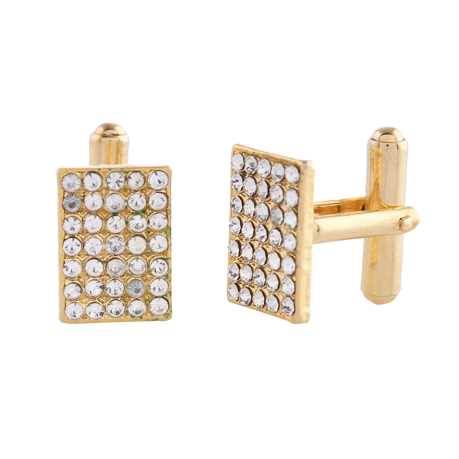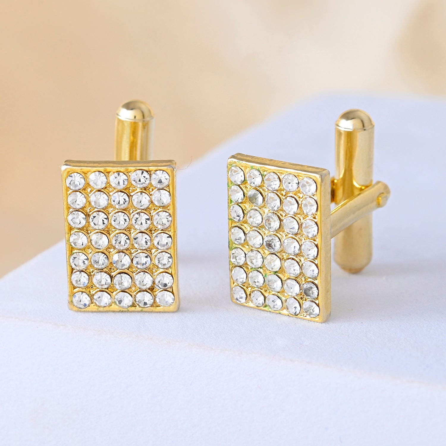 Introducing the Signature Luxe Men's Cufflinks from Voylla's distinguished "The Gentleman's Club" collection. Crafted with meticulous attention to detail, these cufflinks are made from high-quality alloy and plated with a luxurious gold finish, exuding sophistication and elegance. The design features a rectangular shape embellished with sparkling American diamonds, artfully arranged to catch the light and add a touch of brilliance to your ensemble. These versatile cufflinks are perfect for elevating both formal and everyday attire, making them an ideal accessory for weddings, parties, and professional settings. Whether you're dressing up for a festive occasion, cocktail event, or simply enhancing your workwear, these chic cufflinks are sure to make a statement. They also make a thoughtful gift for men on special occasions such as Valentine's Day, Christmas, New Year, Diwali, Rakshabandhan, and more. Pair them with a crisp dress shirt and a tailored suit for a polished and sophisticated look that exudes confidence and charm.