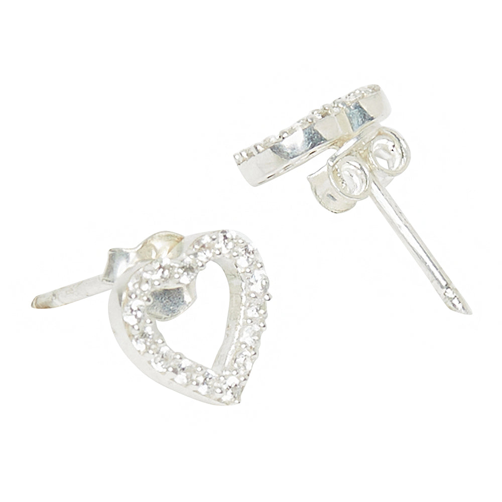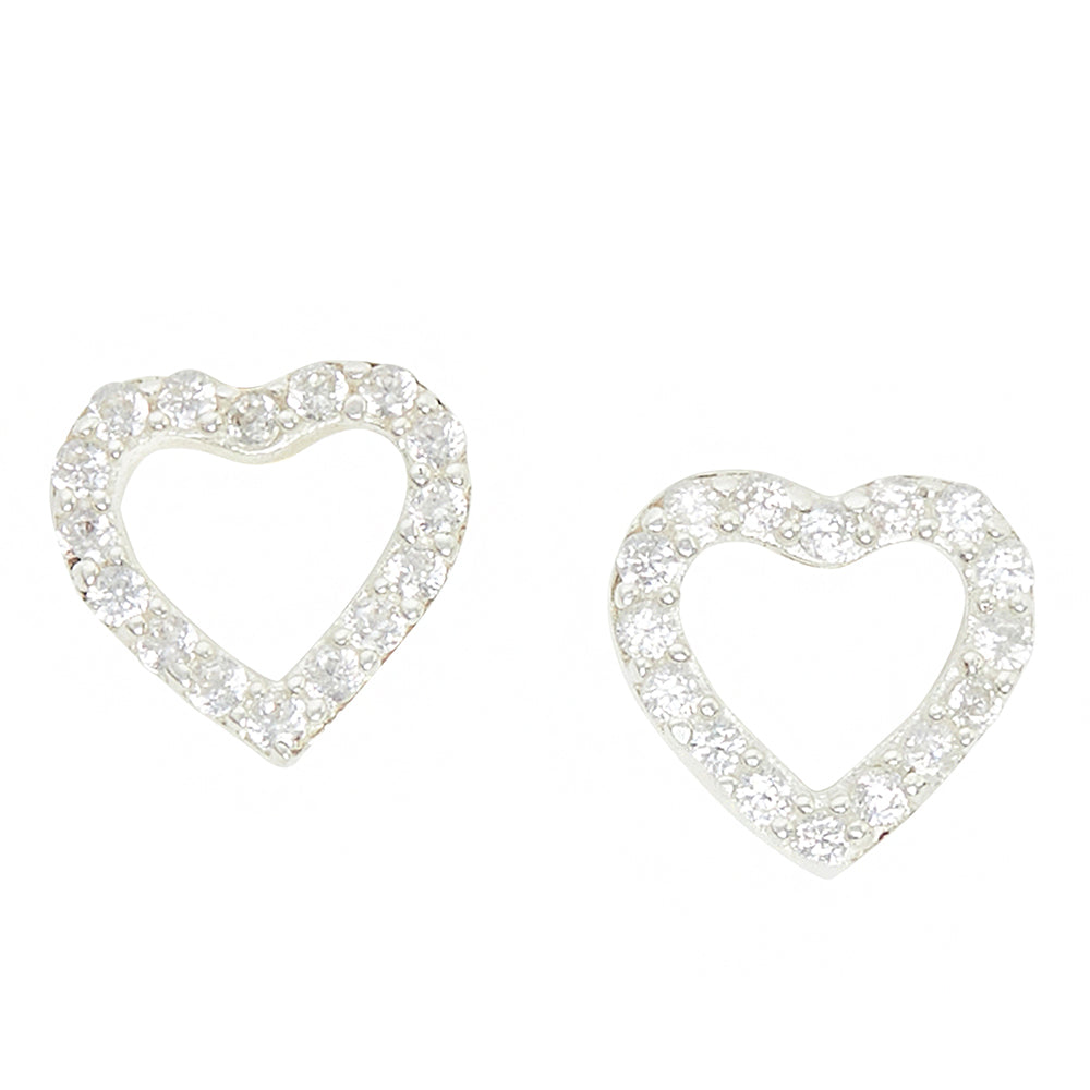 Gorgeous pair of earrings crafted from sterling silver flawlessly designed in a heart shaped motif and decked with white CZ over the motif. Team them with any of your attire; would match with all your looks!