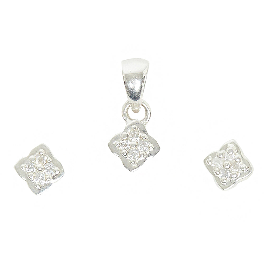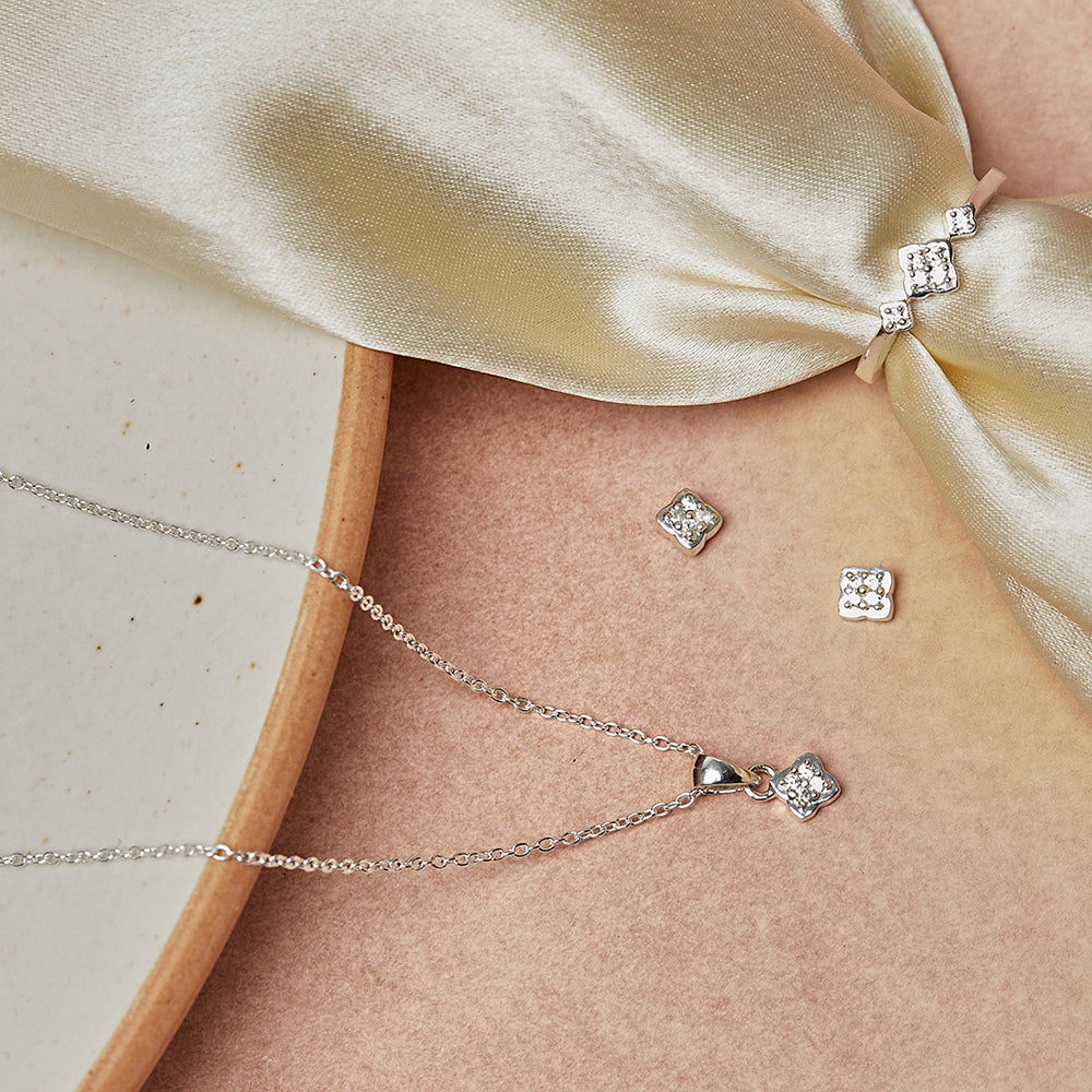 A box set featuring a pendant, earrings and a ring in a pretty design from our Silver CZ Collection. A perfect 9 to 5 piece.