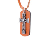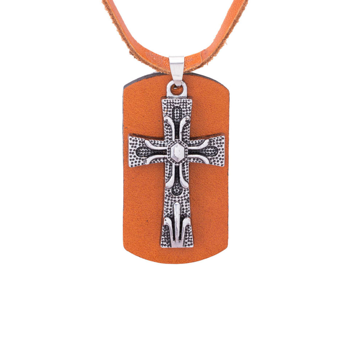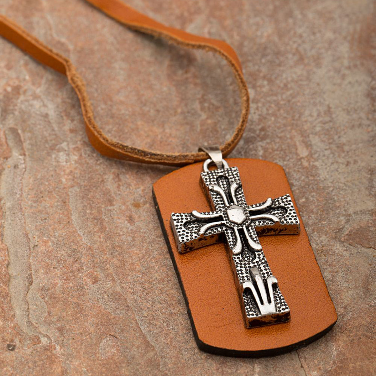 Silver Oxidized Pendant With Brown Leather Chain For Men
