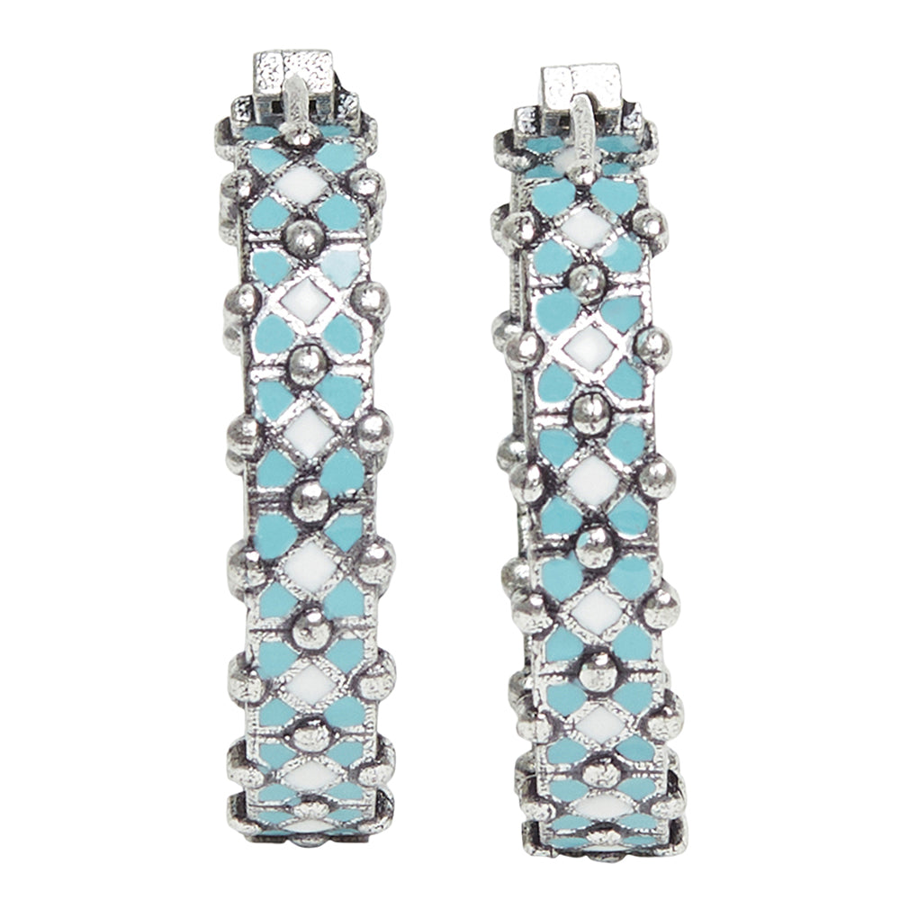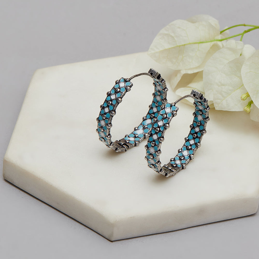 Enhance your beauty and give yourself an elegant look with our trendy jewelery collection. These finely designed earrings in brass will splendid your appearance, and the final flourish of silver coating gives it a more embellishing look. So don?t wait anymore and grab your piece soon by ordering it online/offline before it stock out.