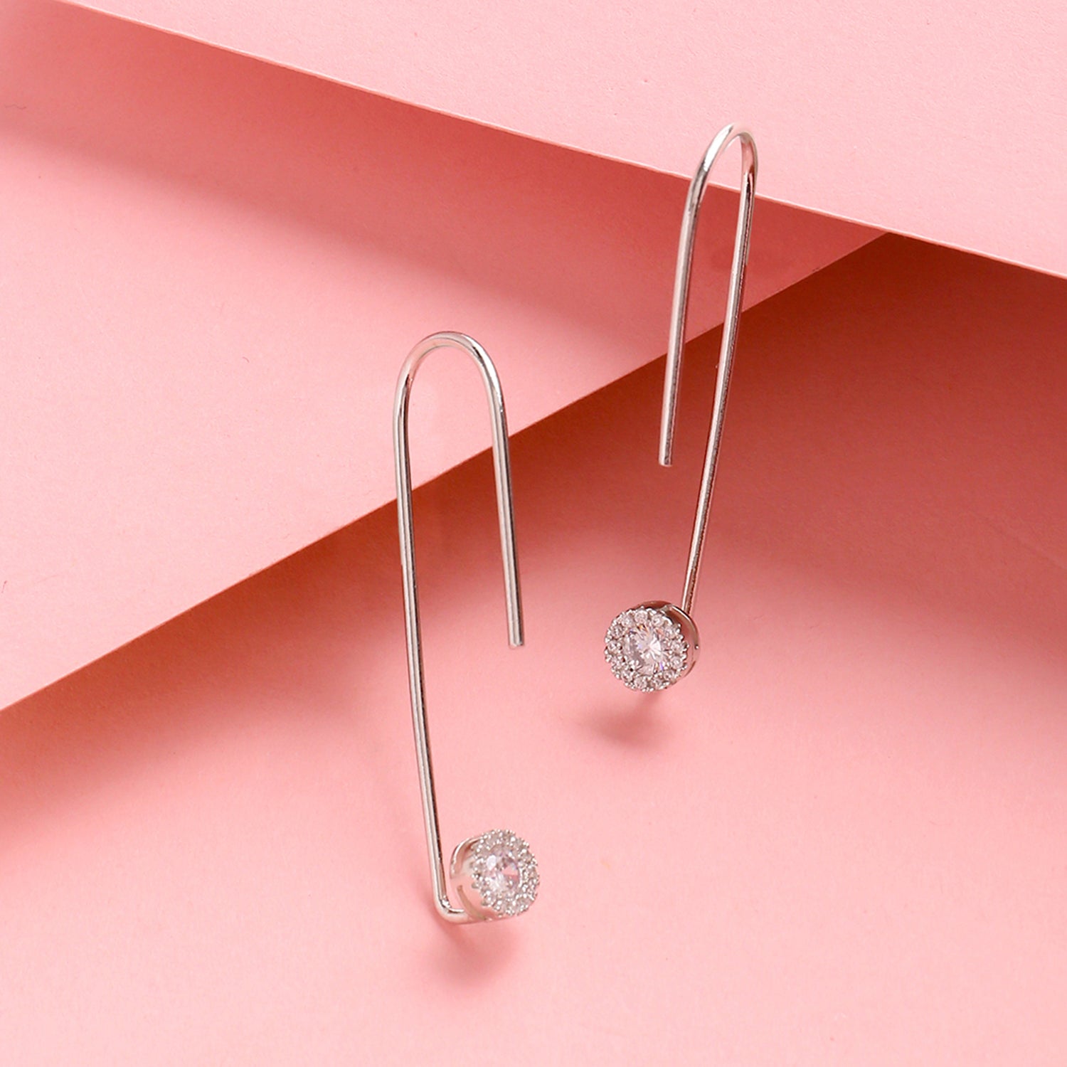 When you want your natural beauty to glow, simplicity is the way to go. These long pair of earrings are simple and luxurious that highlight the beauty in you. The high-quality American Diamond stones and silver plating add the right balance of sophistication to these gorgeous danglers.