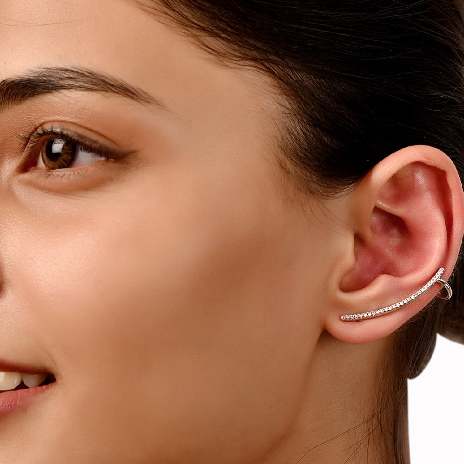 Add some stylish twist to your femininity by wearing this sparkling CZ studded cuff bracelet in silver plating from the house of Voylla. Made of brass, this wrist accessory is high in quality as light in weight. Caring for your...
