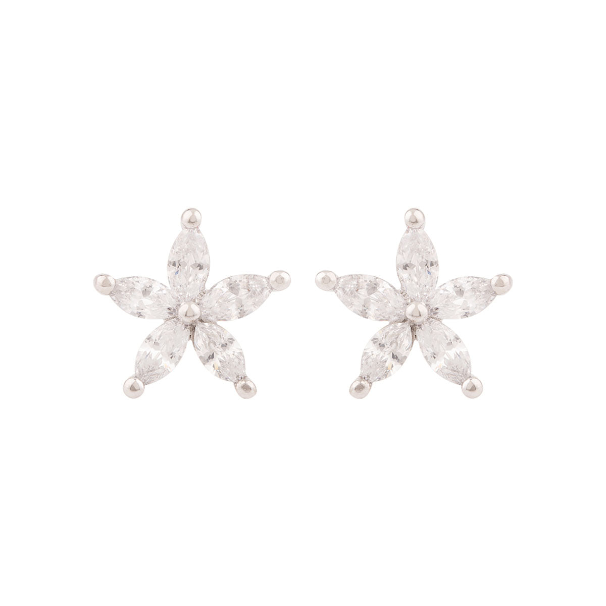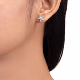 Stud style earrings in a floral motif. CZ gems adorned and silver plated. Wear the brass pair with a casual dress. This piece of jewelry comes with the Voylla assurance of quality and durability. Caring for your fashion jewelry: We, at Voylla, take care of every piece of jewelry so that you don't spend hours caring for them.