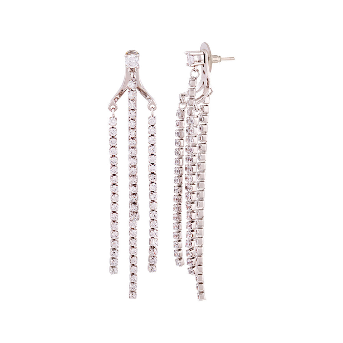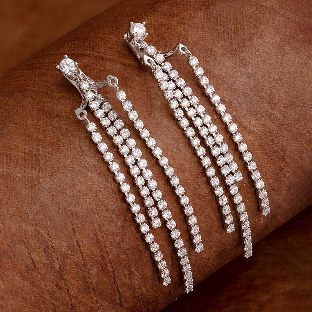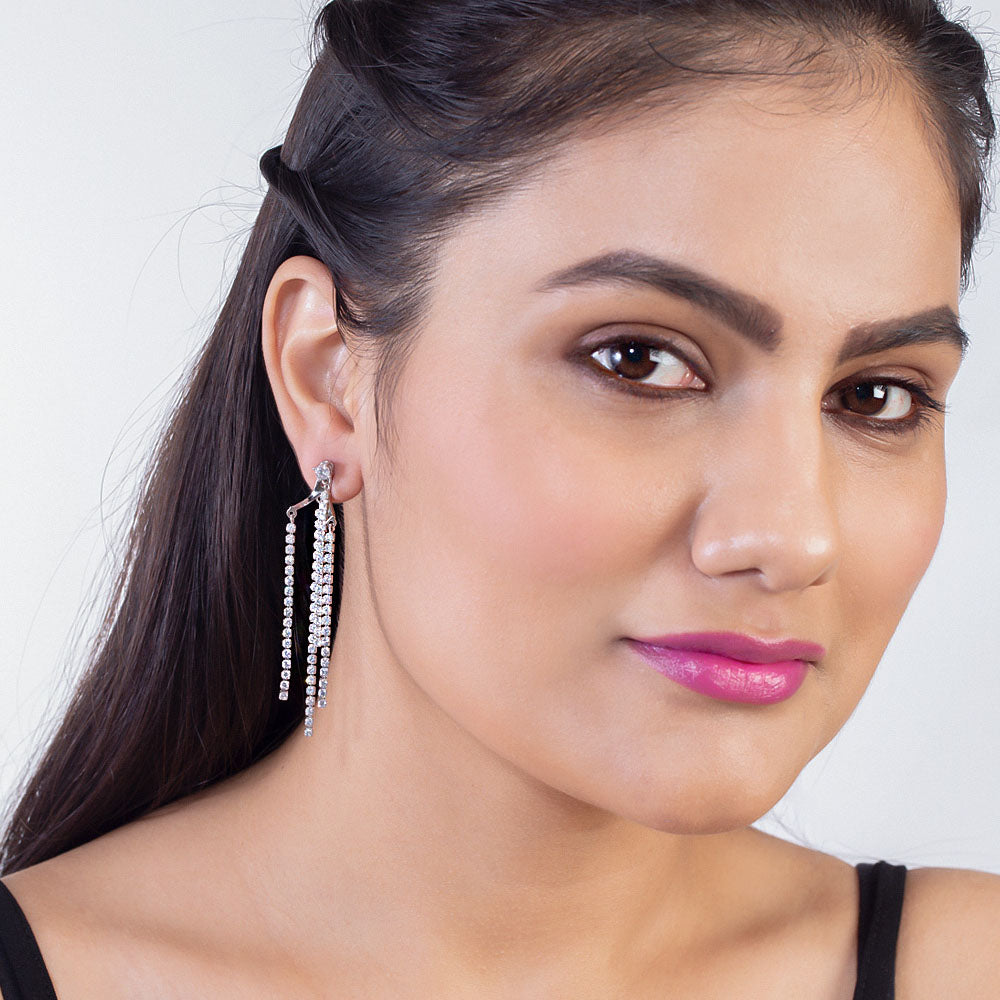 Silver plated tassels drop earrings made from brass. Zircons embellished and good for casual wear. This piece of jewelry comes with the Voylla assurance of quality and durability.