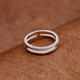 Band rig for women made from brass. Silver plated and lightly embellished. Good for everyday wear.