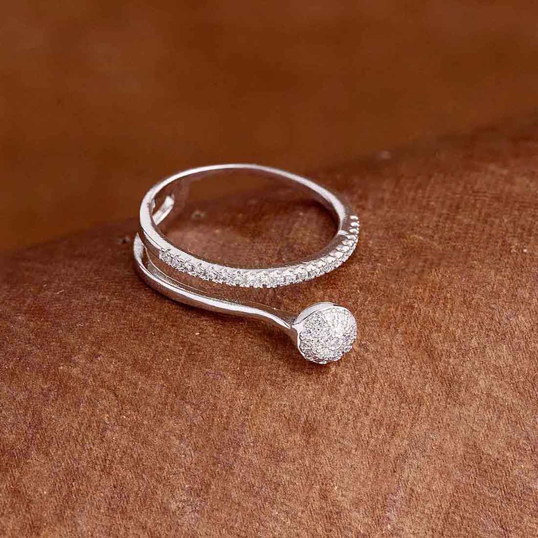 Zircons adorned silver plated ring. Fashioned out of brass and a good match for party looks.