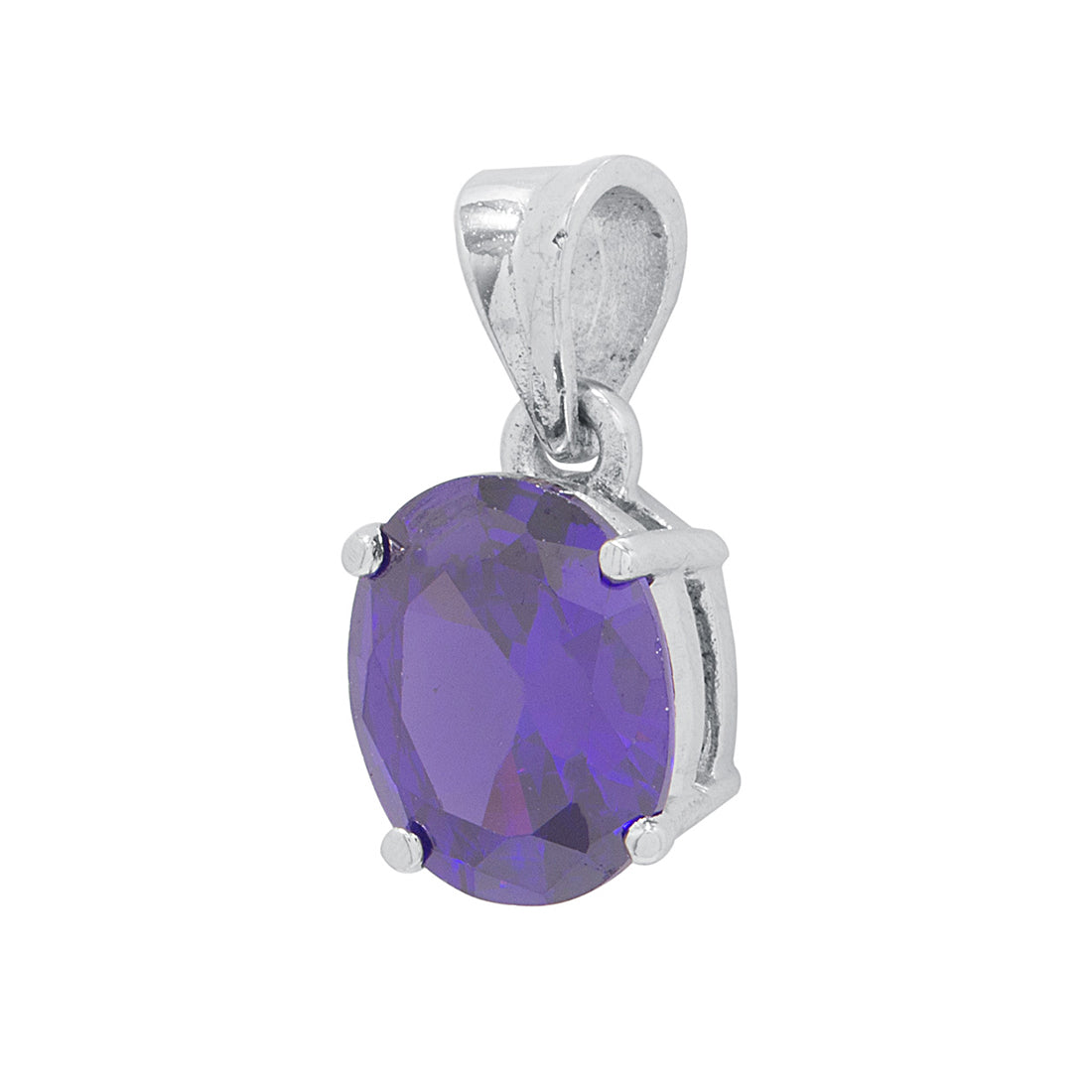 Leave everyone awestruck with your look when you wear this stunning pendant. It is fashioned with sparkling purple stone and glossy silver tone. Get it today!
