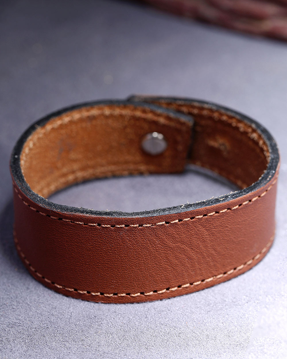 Up your style ante every time with this trendy brown colored men’s bracelet in belt design. Its plain design will lend your casual look that laid back highlight, the leather make will assure longevity and a comfortable wear.