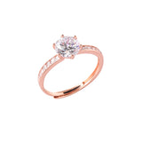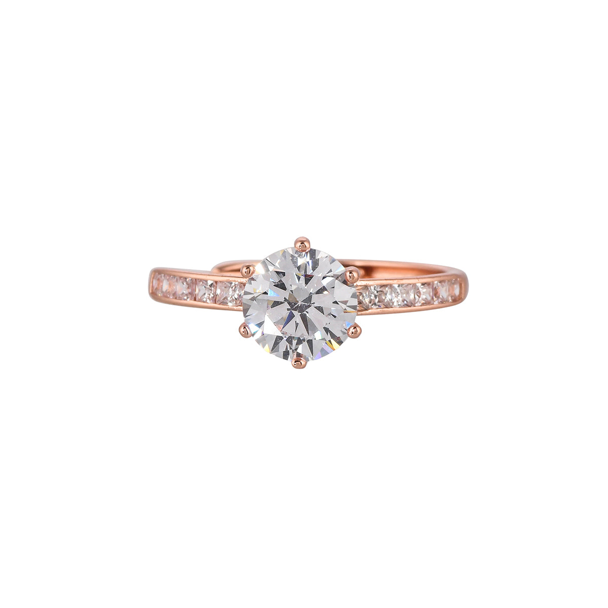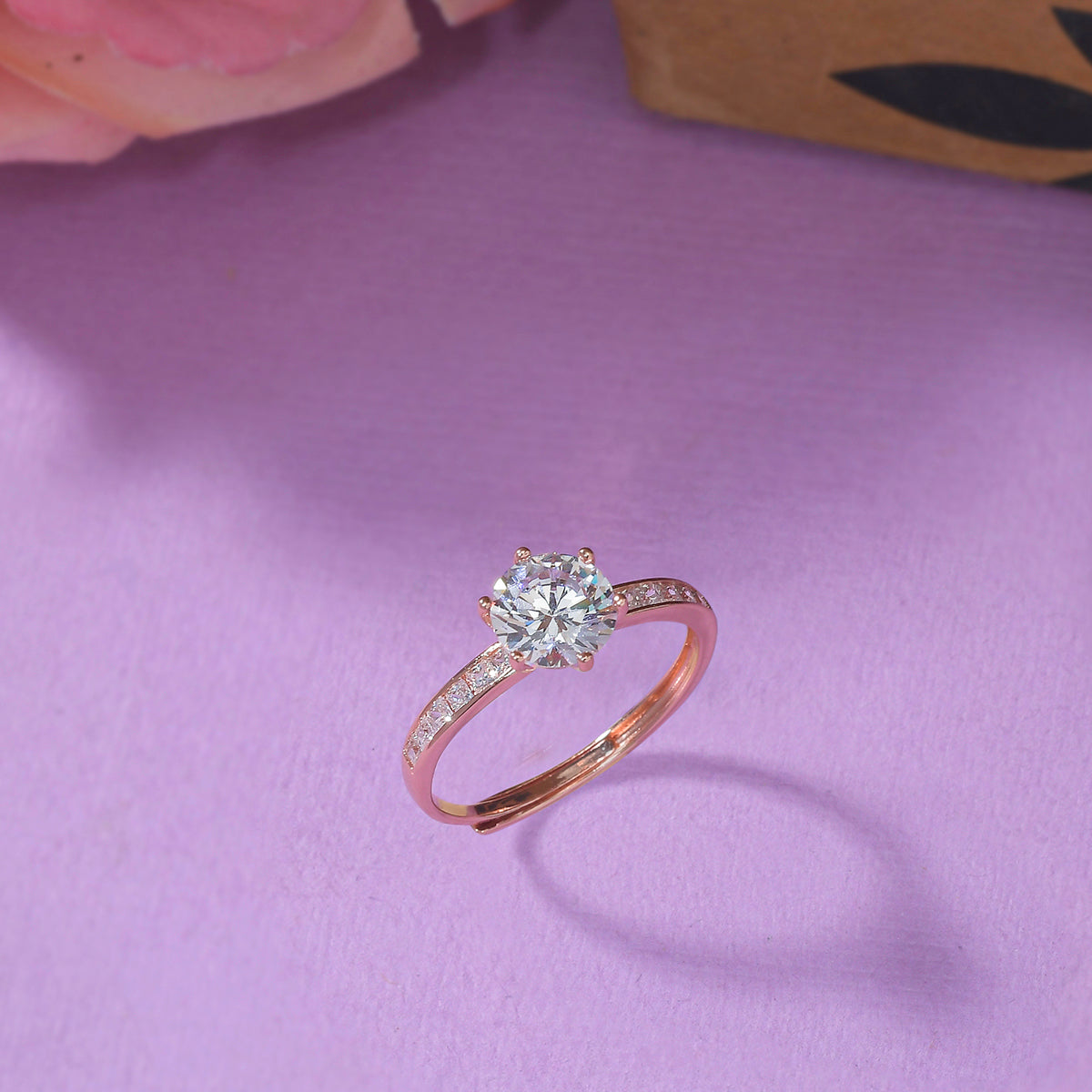 Six Prong Rose Gold Plated Round Cut Zircon Adorned Brass Ring