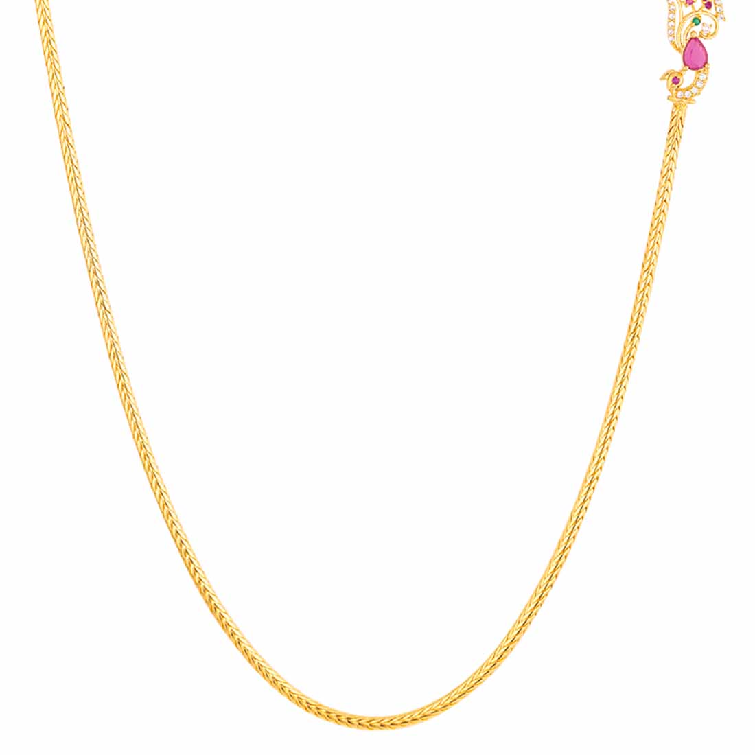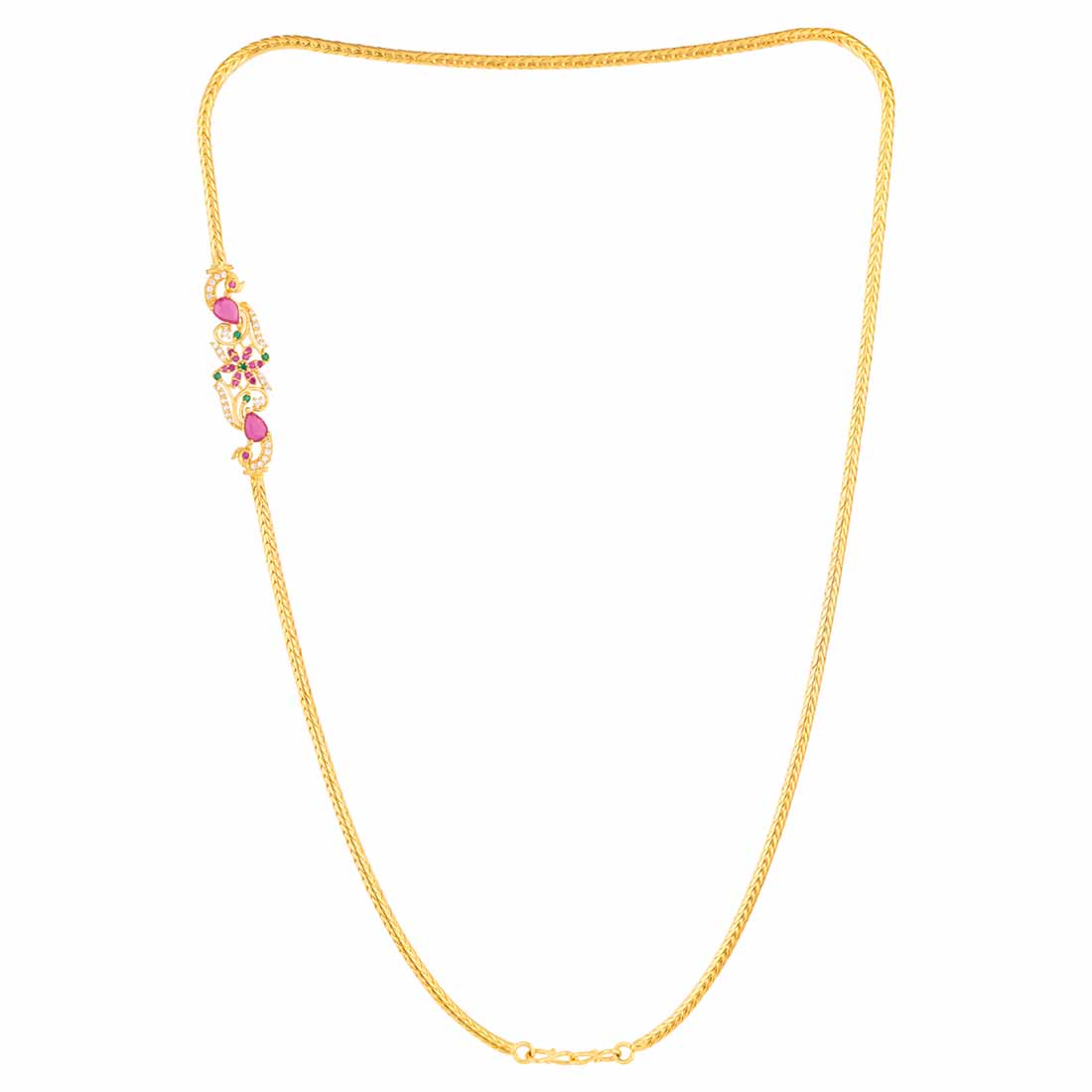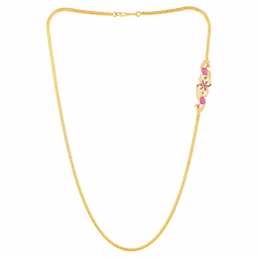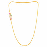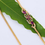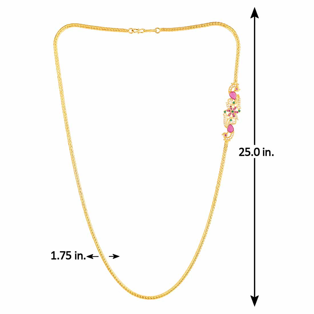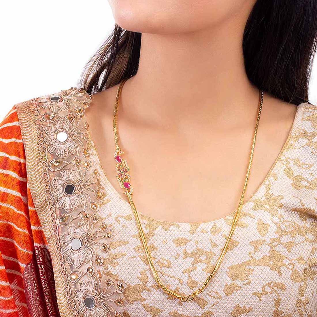 Antique inspired brass necklace with yellow gold plating. American Diamond gems embellished. Wear with formal ethnic attire.