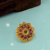 Flower motif brass ring with light embellishments. Yellow gold plated. Pair with formal ethnic looks.