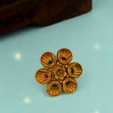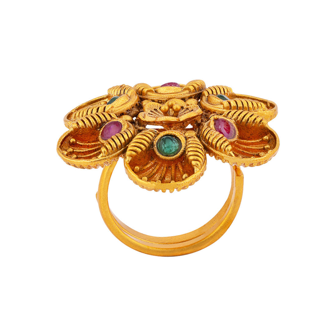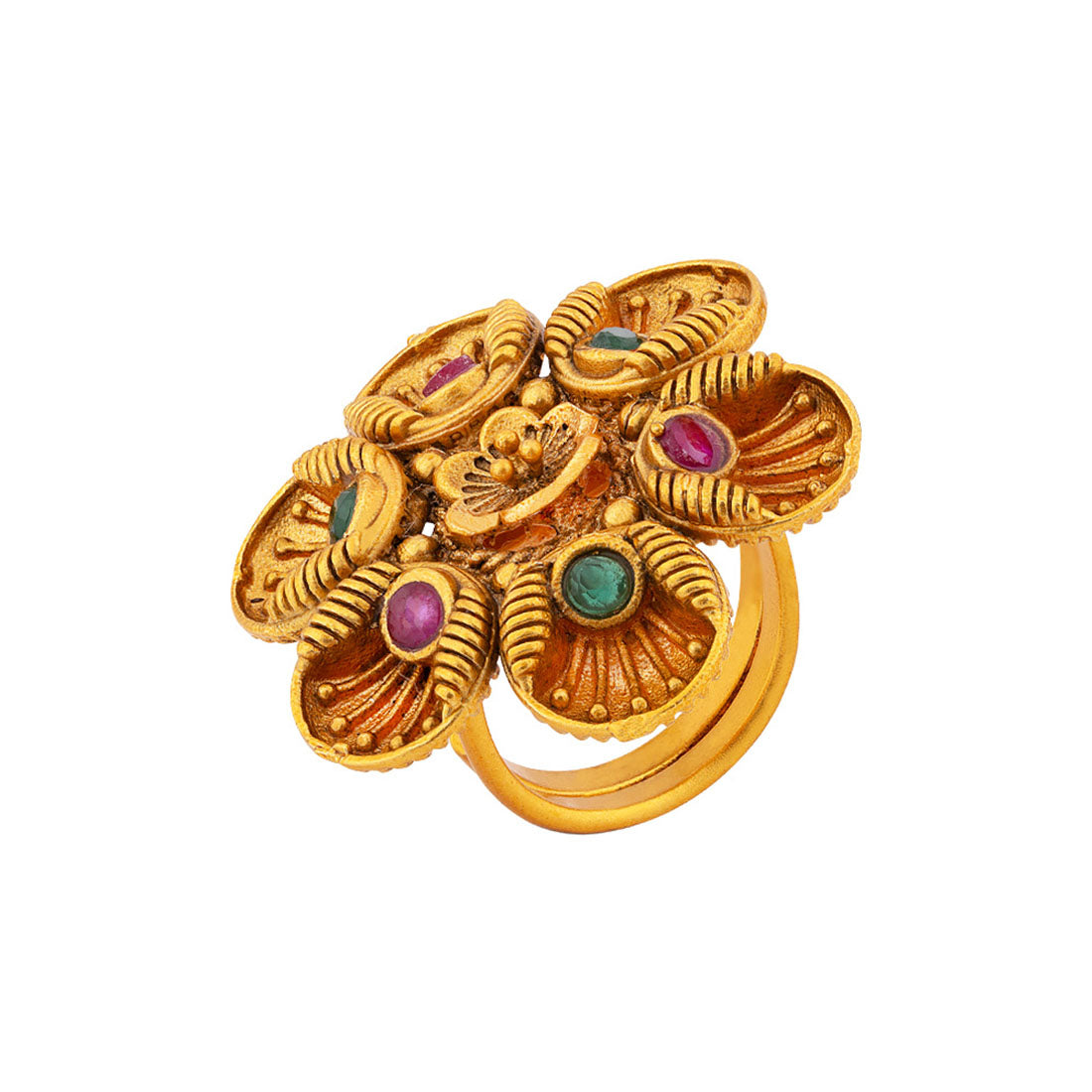 Petals motif ring made from brass. Yellow gold plated and lightly embellished. Wear with formal attire.