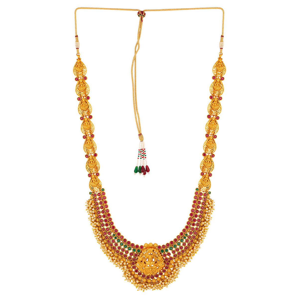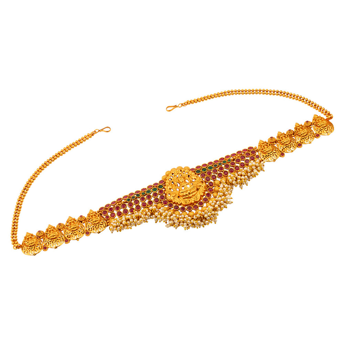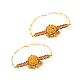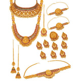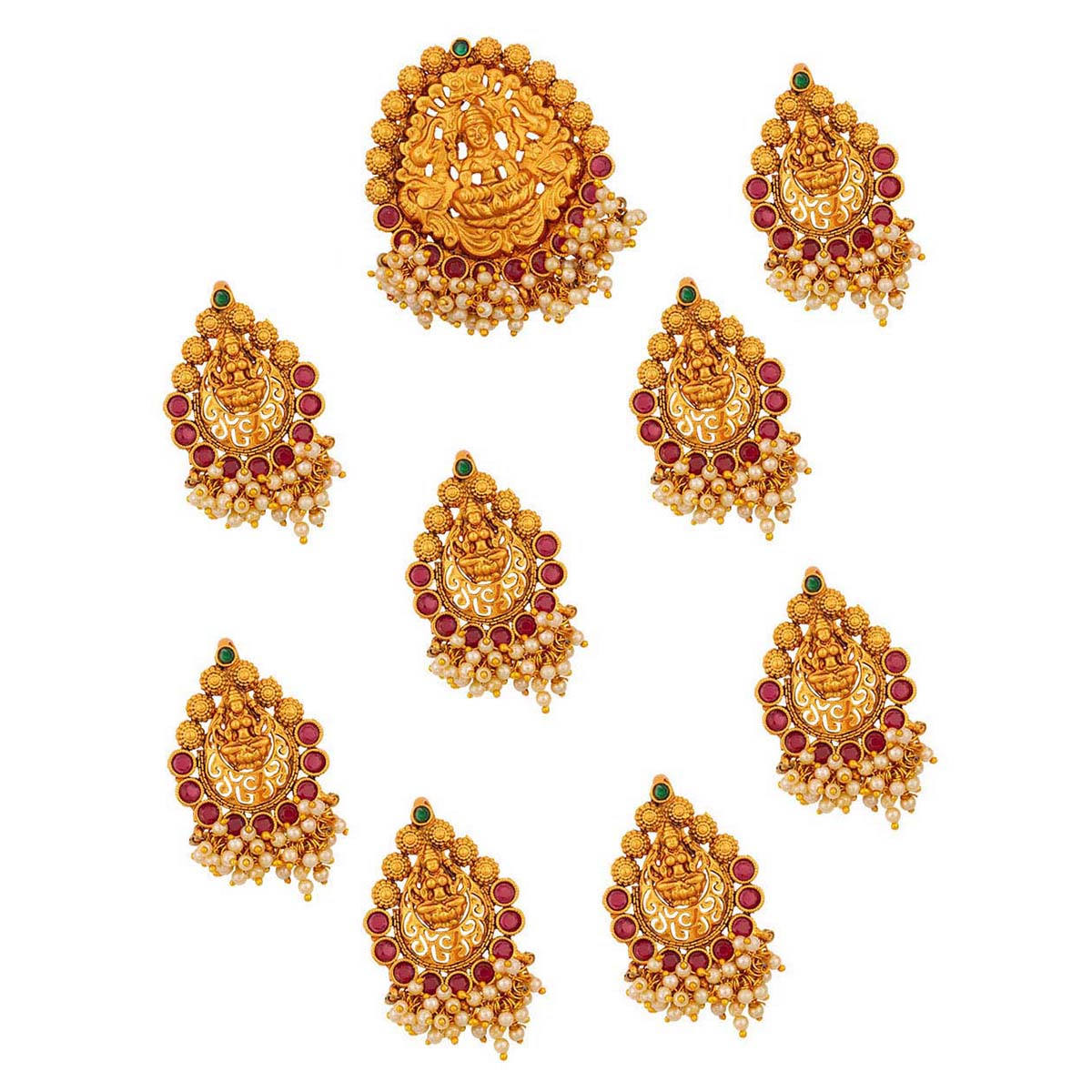 Stone Embellished bridal set complete with all required accessories. Handcrafted from brass. Match with traditional bridal attire. This piece of jewelry comes with the Voylla assurance of quality and durability.