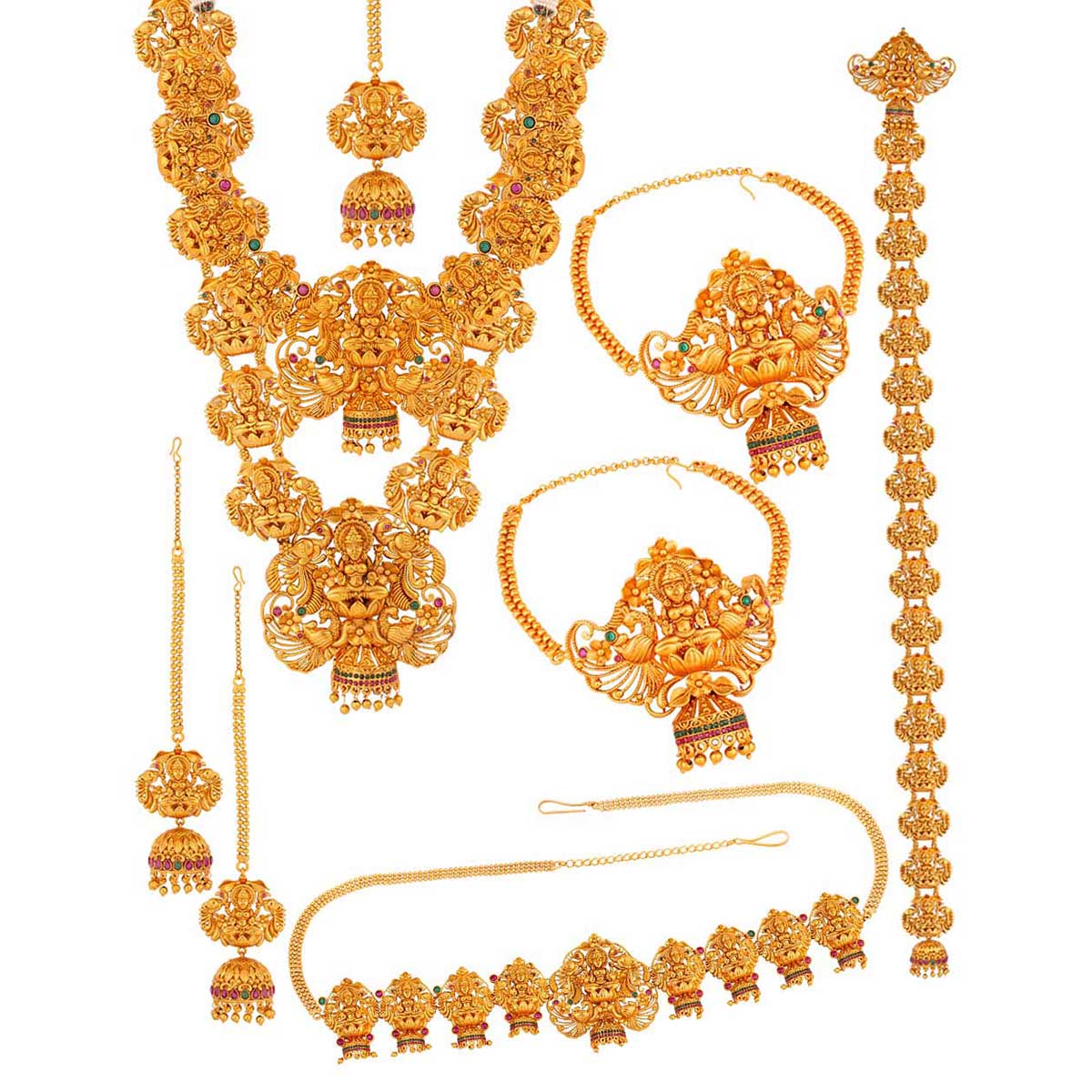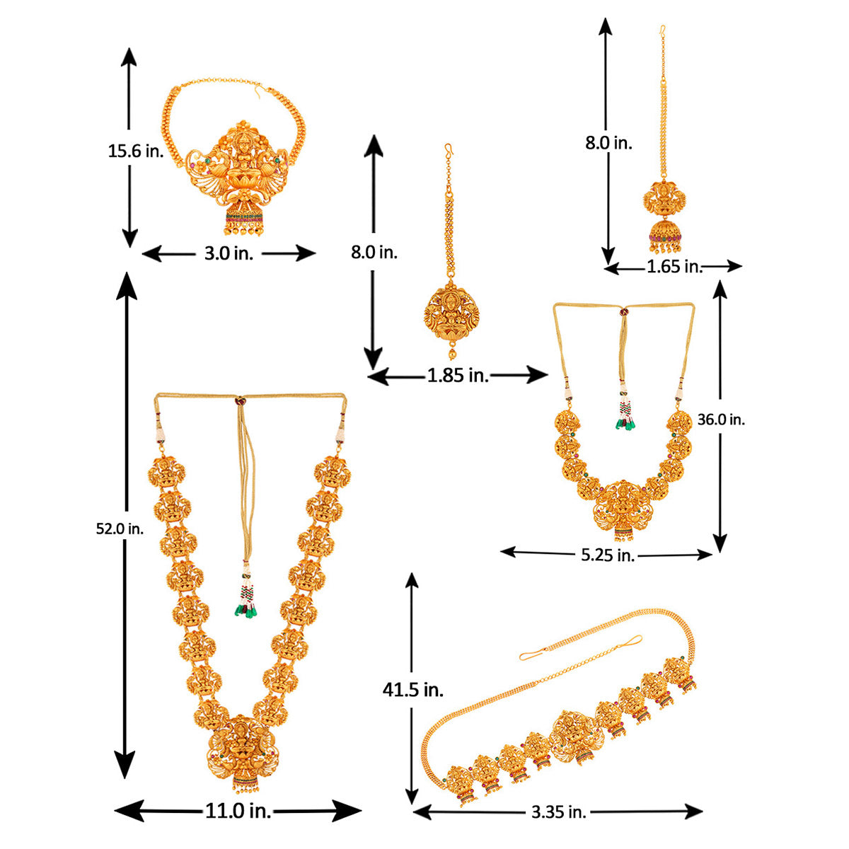 Traditional bridal set inclusive of all essential accessories. Made from brass and yellow gold plated. Wear with Indian bridal outfits.