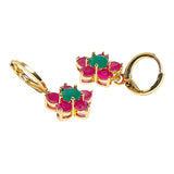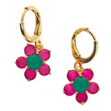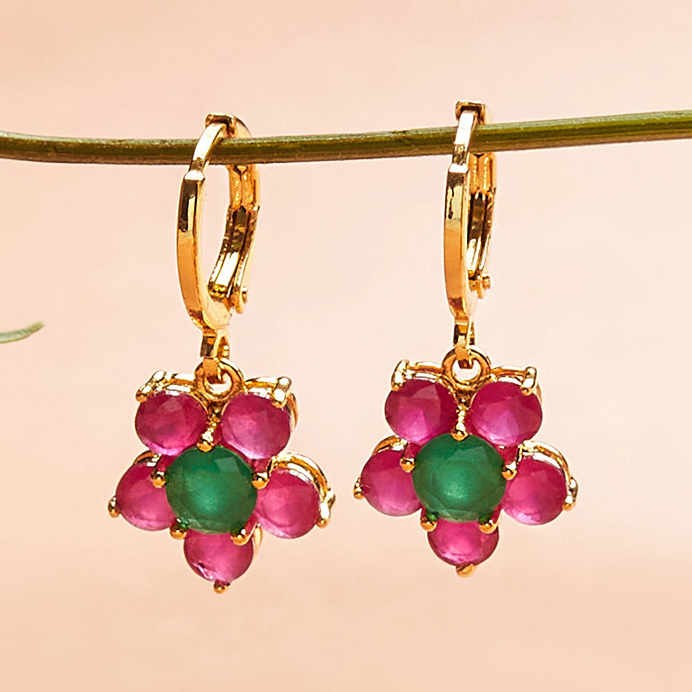 Floral Round Cut Zircons Adorned Gold Plated Brass Huggie Earrings