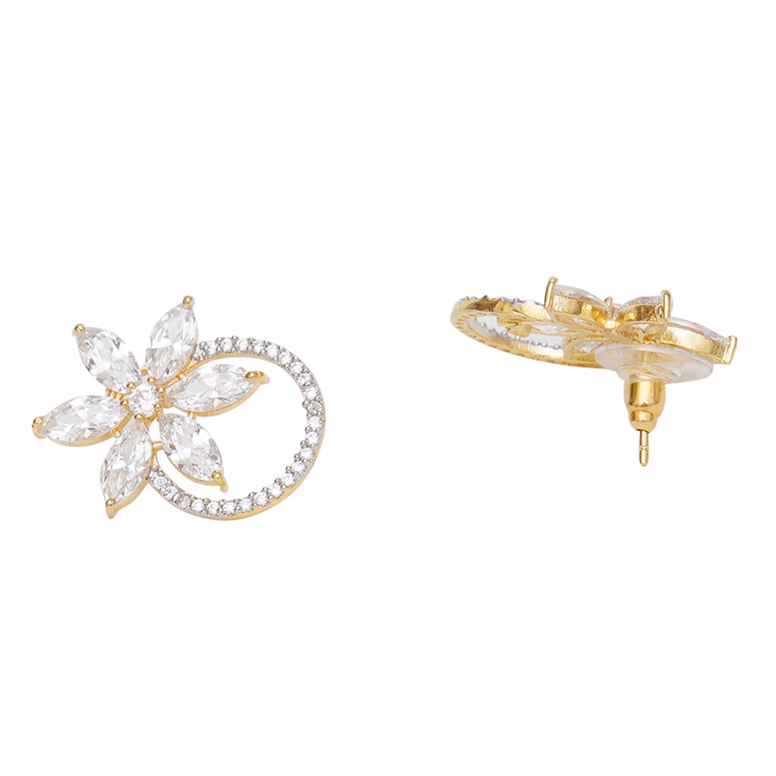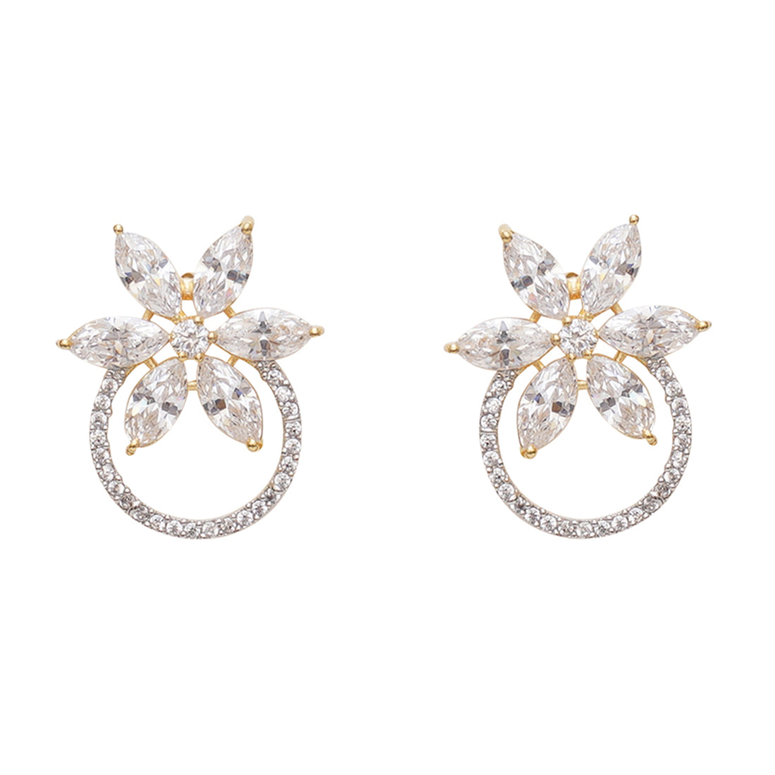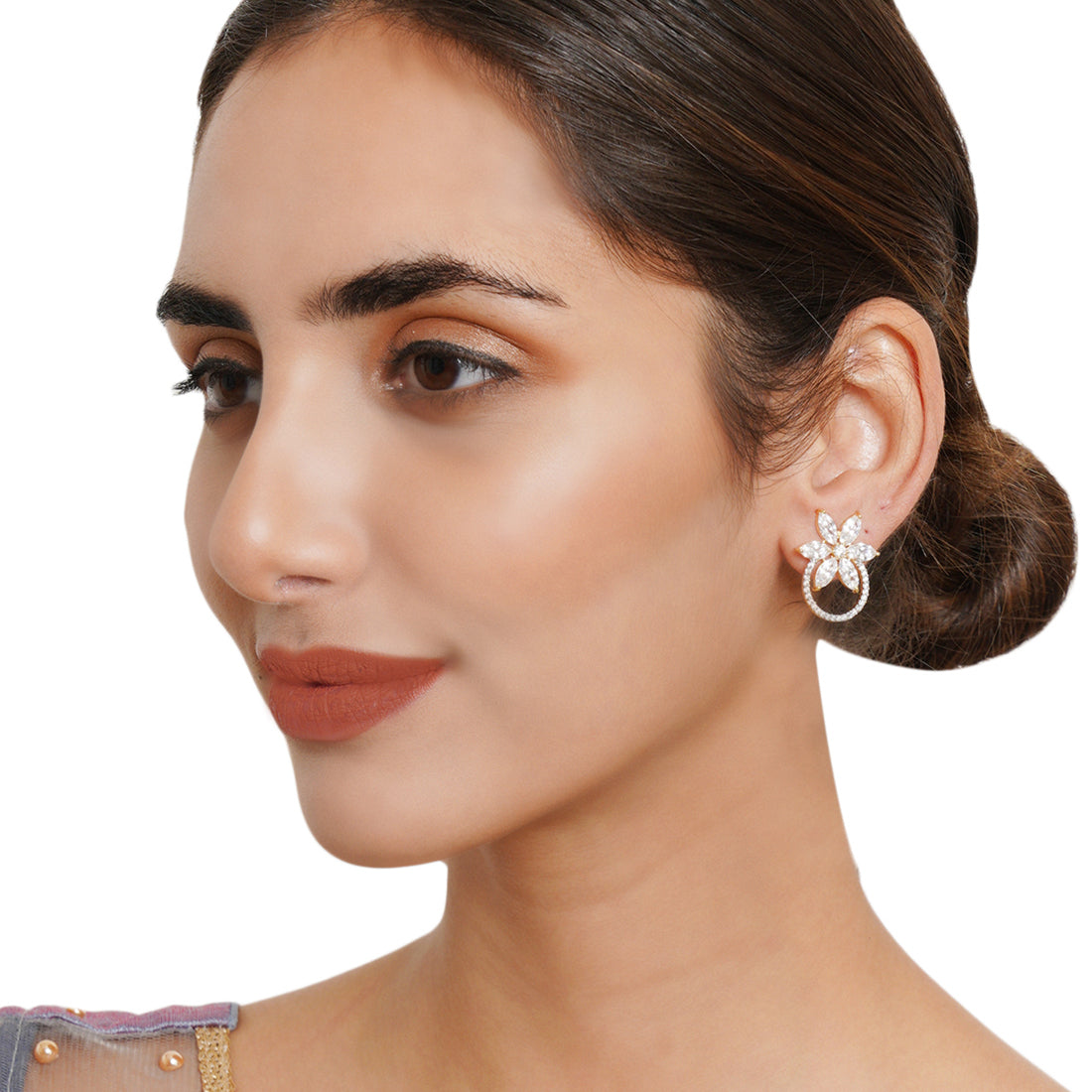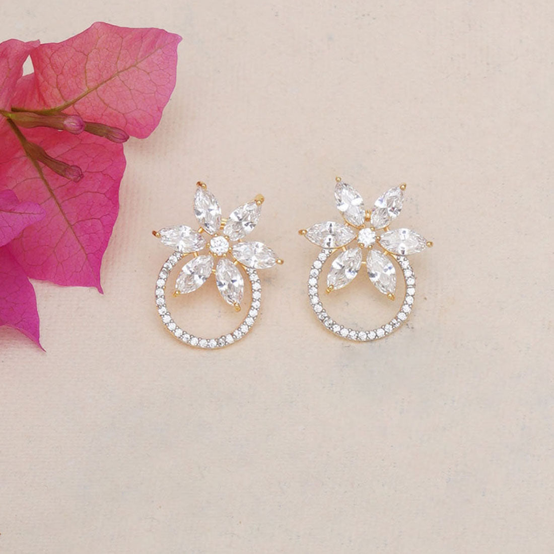 These exquisite american diamond flower earrings are a unique and beautiful piece of jewellery that will be treasured by their lucky owner. The earrings will add a hint of subtle elegance to your look. Perfect for any occassion, these flower drops are lightweight, versatile, and contemporary.