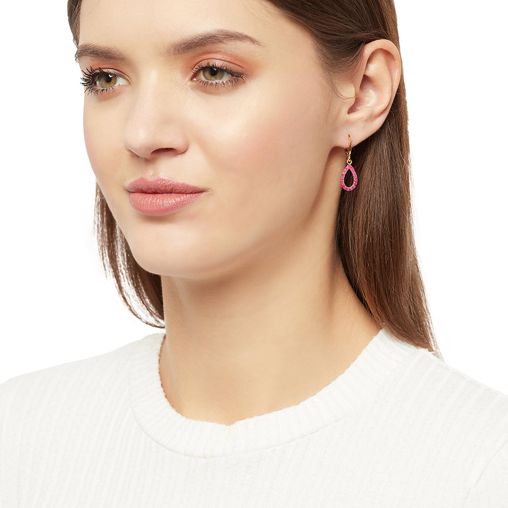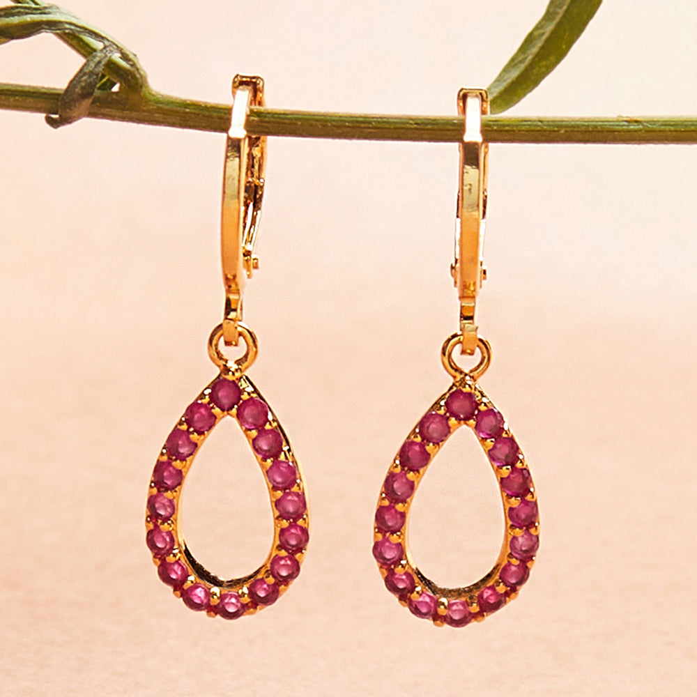 Teardrop earrings made from brass and gold plated. CZ gems embellished and a good match for formal looks.