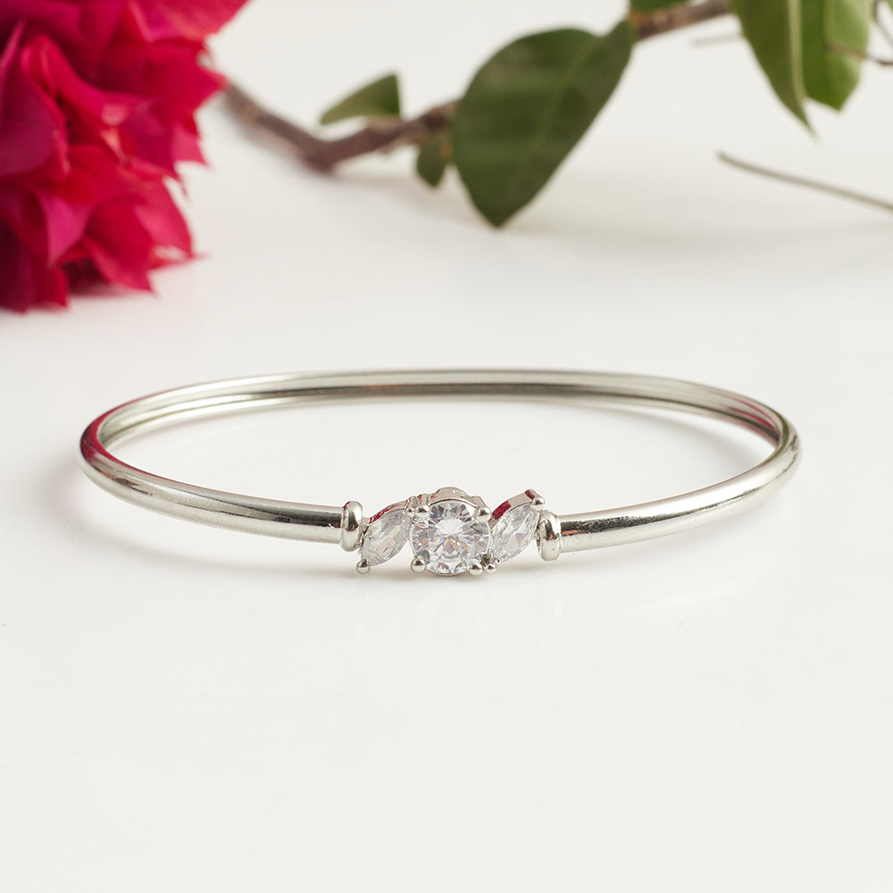 This beautiful and elegant bracelet, which sparkles with white rhodium, is a timeless accessory for every wardrobe. The silver finish bracelet stands out from similar ones because of its smooth, sophisticated touch. The wristband style gives it an evergreen touch that will last forever. No matter you are heading to a dinner, or meeting your colleagues at the office party, this bracelet from the elegance collection is surely going to be a head turner. The shine and lusture stay intact because of the usage of high quality Rhodium and extensive silver finish.