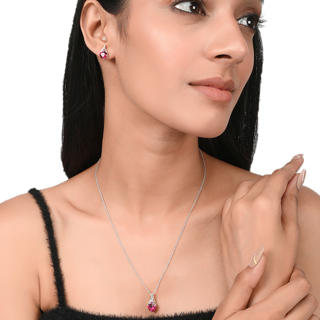Sparkling 925 Sterling Silver CZ Pendant Set