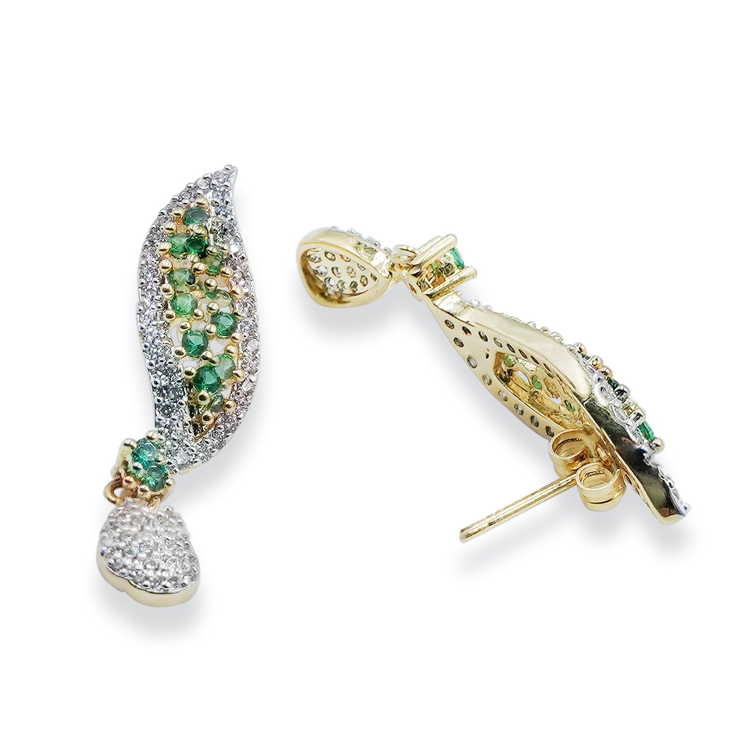 Sparkling Elegance Green and White CZ Brass Silver Plated Jewellery Set
